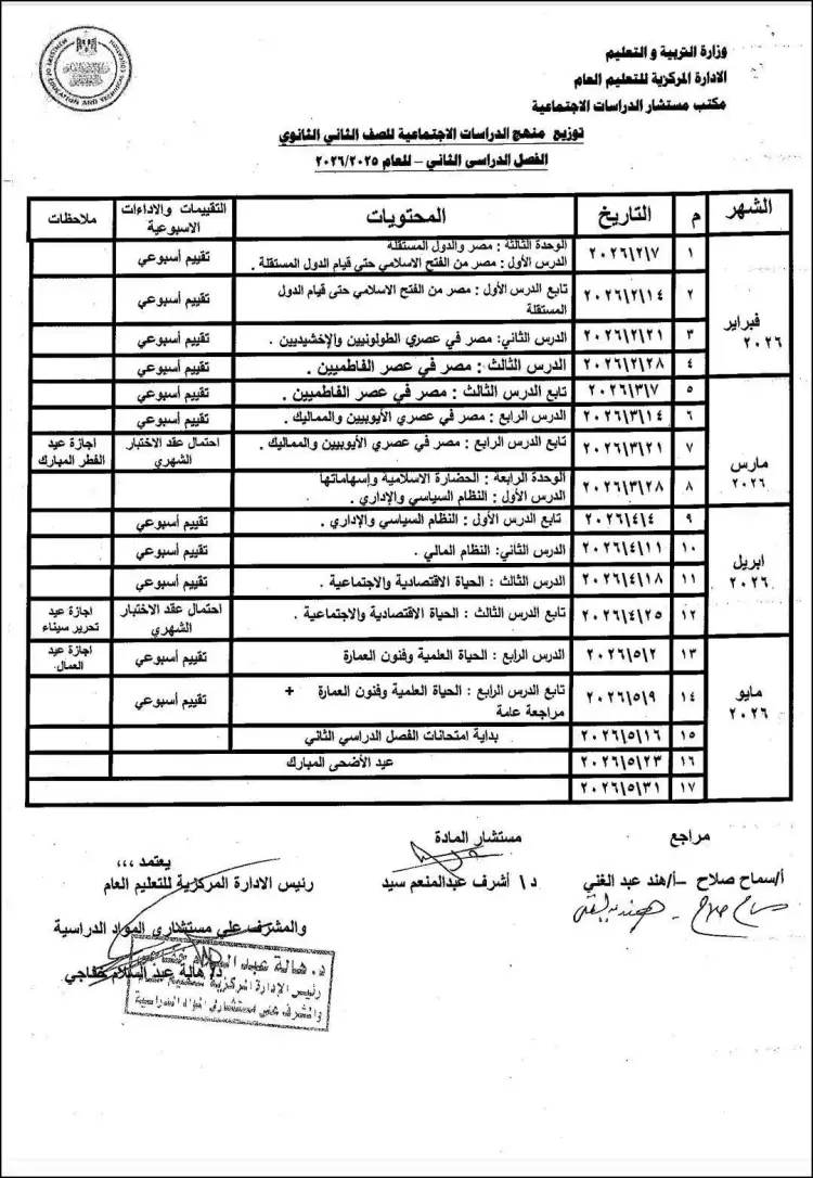 نتطرق في السطور التالية إلى توزيع منهج التاريخ تانية ثانوي الفصل الدراسي الثاني 2026.