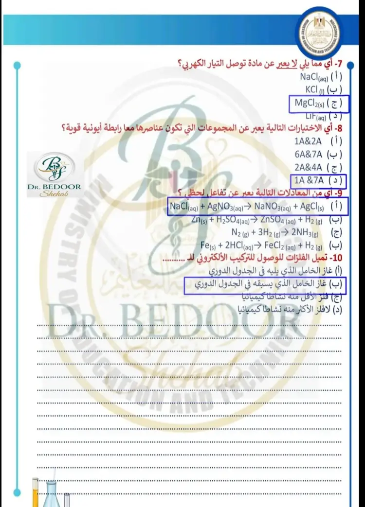 جاءت إجابات الواجب المنزلي والتقييم الأسبوعي الأول كيمياء الصف الثاني الثانوي الترم الثاني على النحو التالي:
