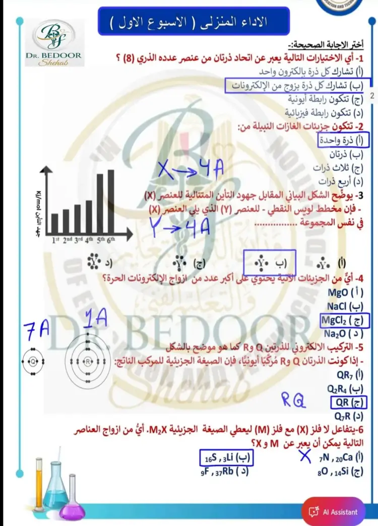 حل الواجب المنزلي والتقييم الأسبوعي الأول كيمياء الصف الثاني الثانوي الترم الثاني 2026