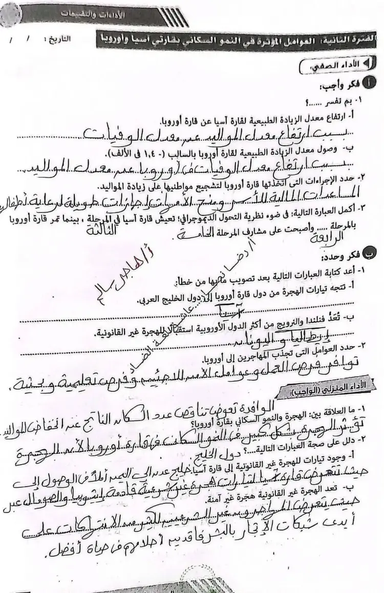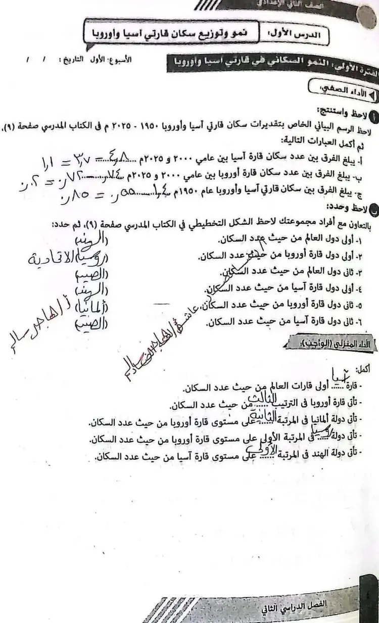 حل الأداء الصفي دراسات الصف الثاني الإعدادي الأسبوع الأول الترم الثاني 2026