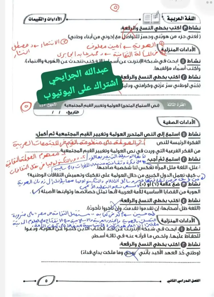 • ج: الخطر هو طمس الهوية الوطنية، ونحمي أنفسنا من خلال التمسك بالقيم والأخلاق واللغة العربية.