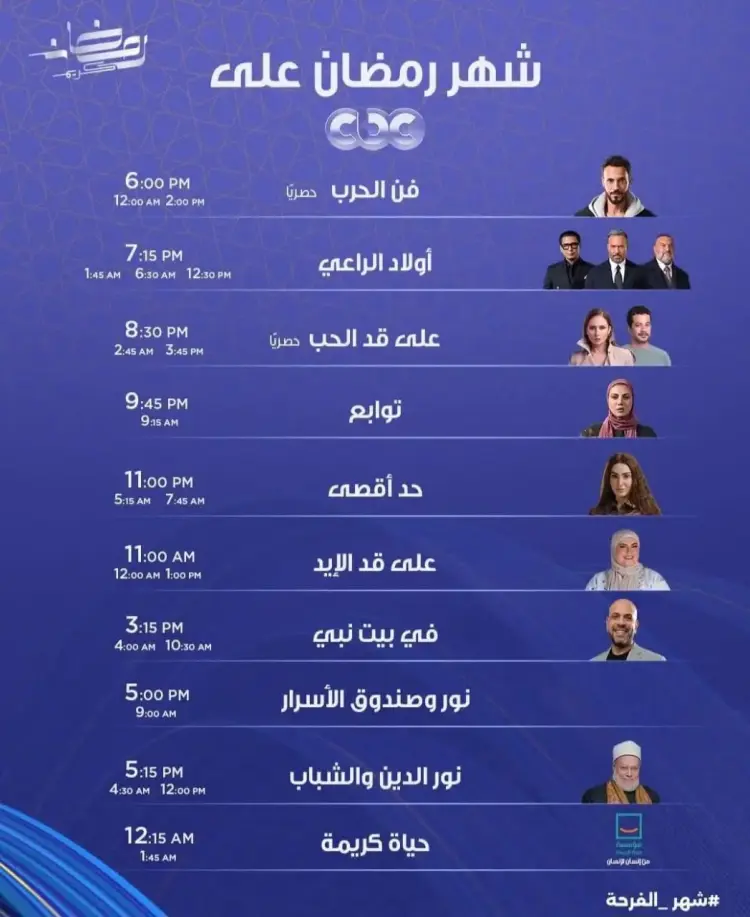جدول ومواعيد مسلسلات وبرامج cbc في رمضان 2026