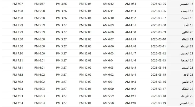 ويعتمد الملايين داخل المملكة على هذه التوقيتات لضبط شعائرهم، خاصة وأن إمساكية رمضان 2026 بالرياض تعد المرجع الأول لمعرفة متى يبدأ الصيام.