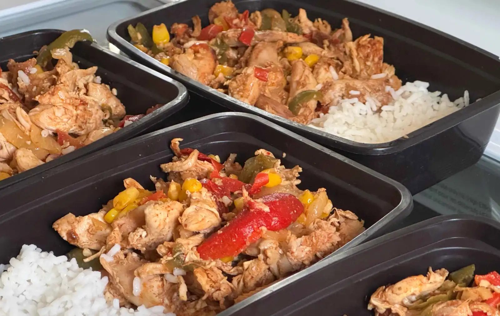 صدور دجاج بصوص المشروم (بروتين) + بطاطس بيوريه أو أرز أبيض (نشويات) + سلطة ملفوف وجزر (خضار) + عصير فراولة طبيعي.