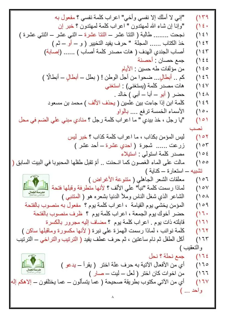 نماذج امتحانات اللغة العربية للوظائف الحكومية