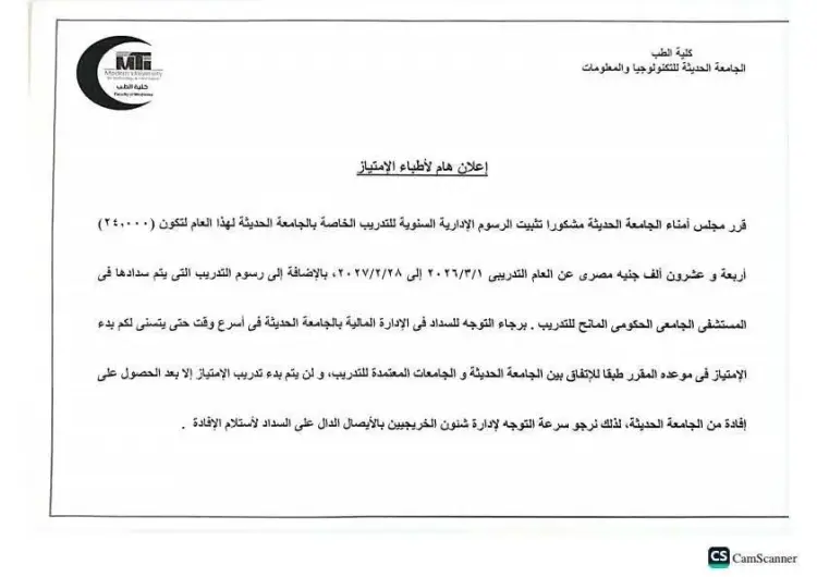 أزمة كلية الطب بجامعة MTI.. رسوم إضافية على سنة الامتياز