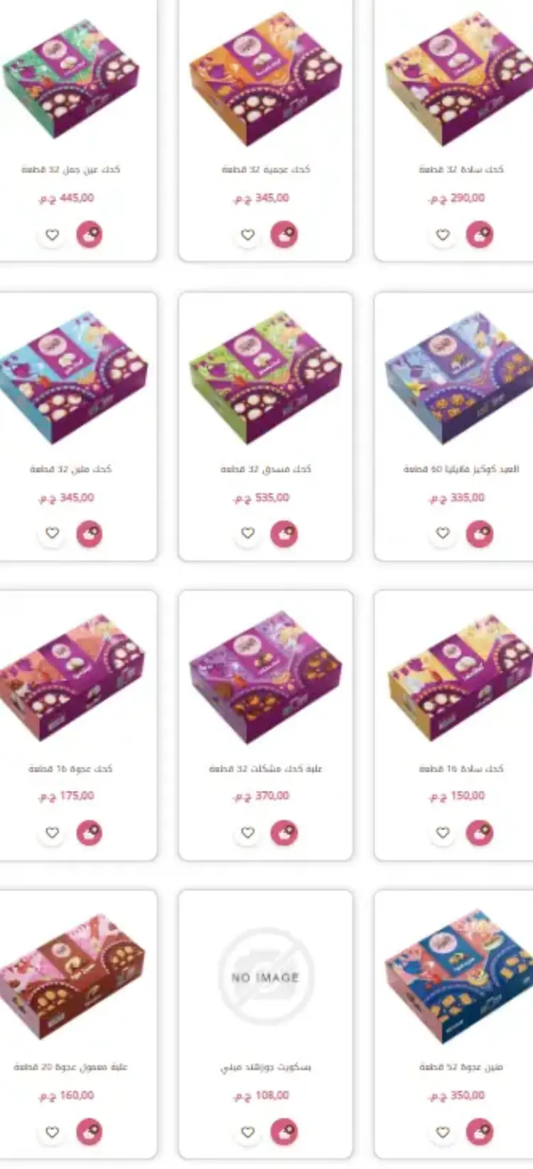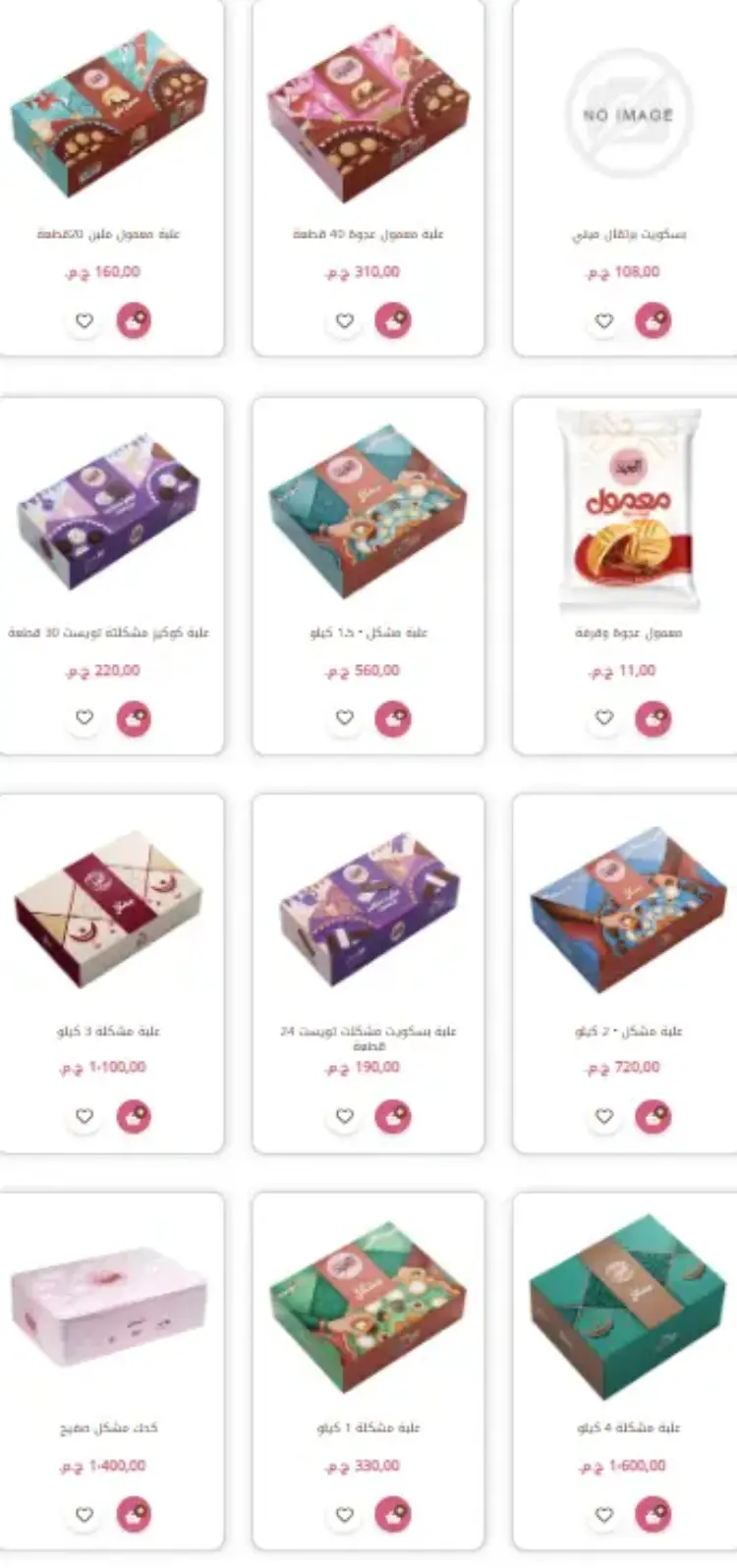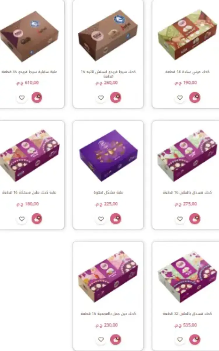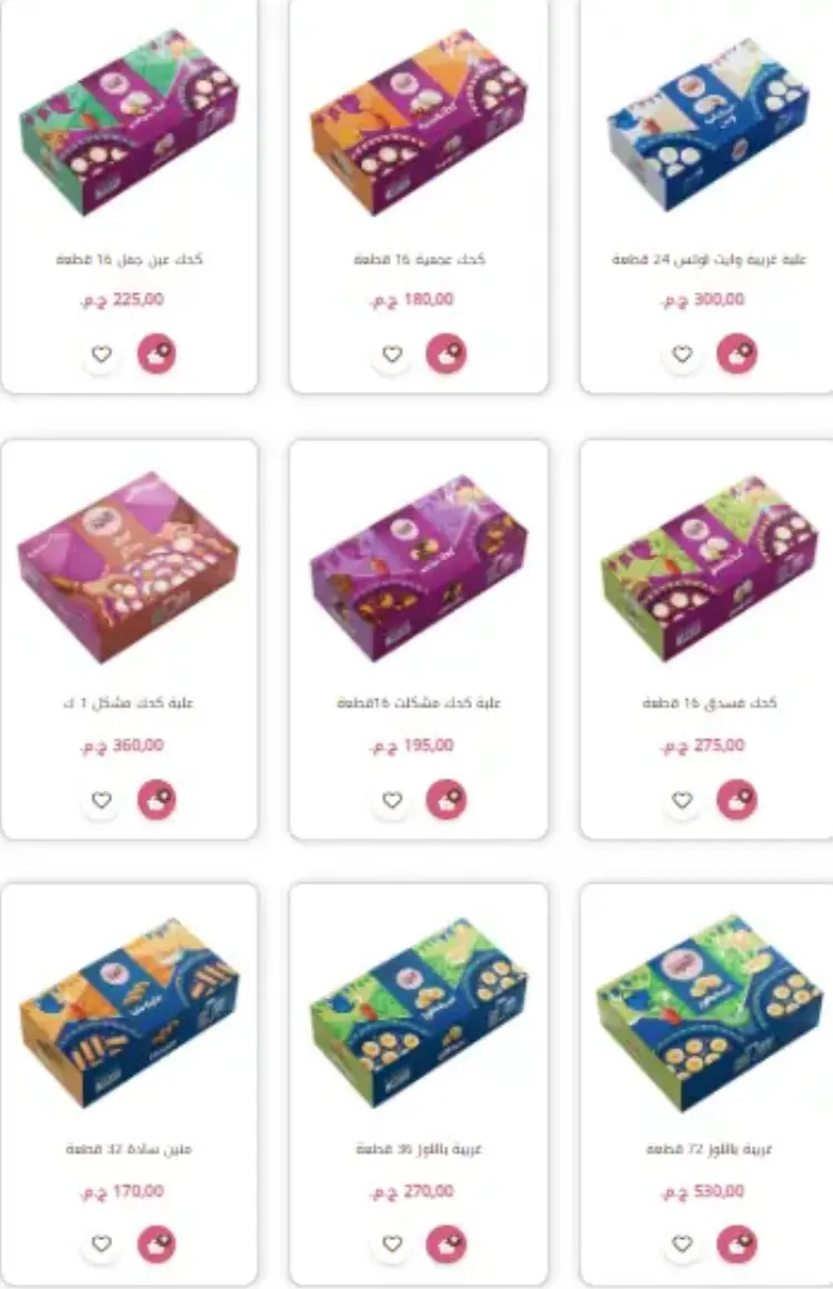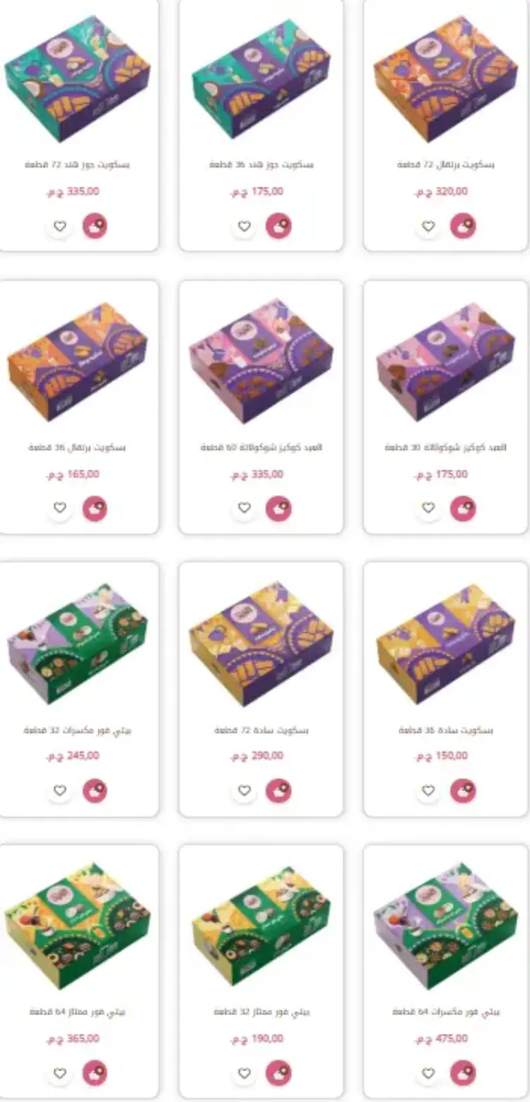 علبة مشكل 2.5 كيلو: بسعر 900 جنيه، وتضم (كحك سادة، ملبن، عين جمل، بيتي فور، غريبة، وبسكويت متنوع).