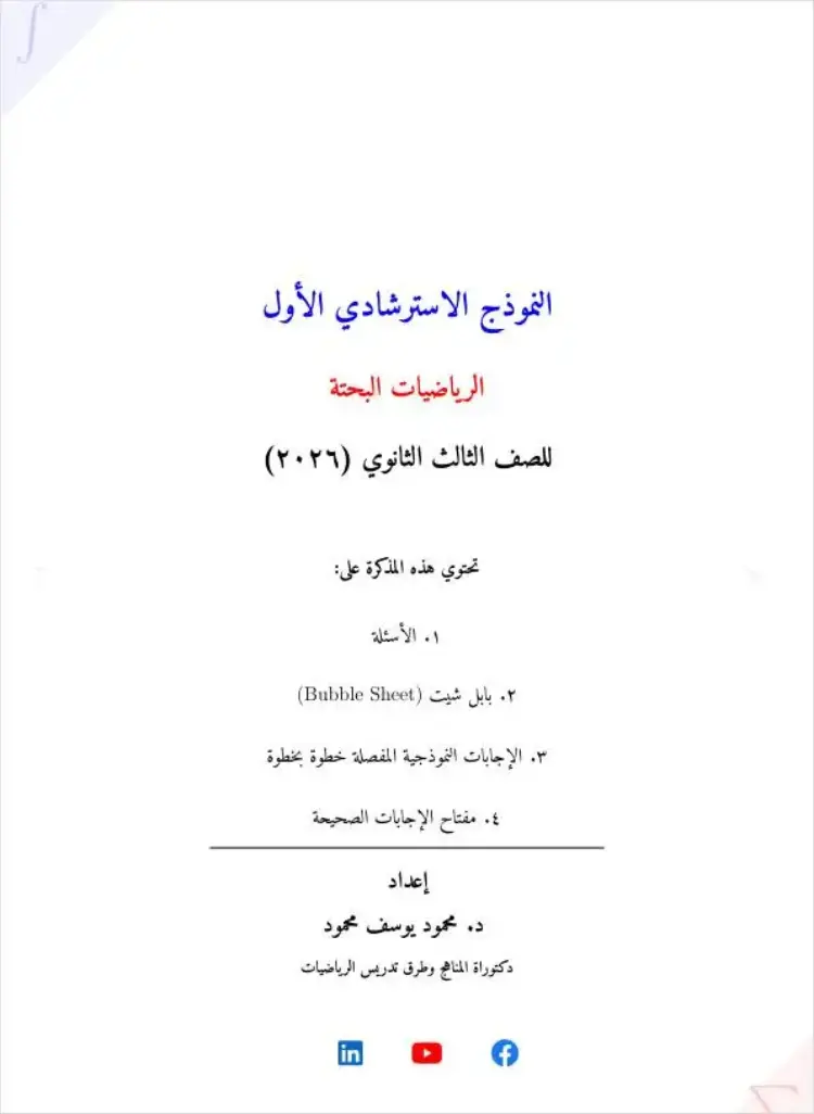 حل النموذج الاسترشادي الأول رياضيات بحتة للصف الثالث الثانوي 2026