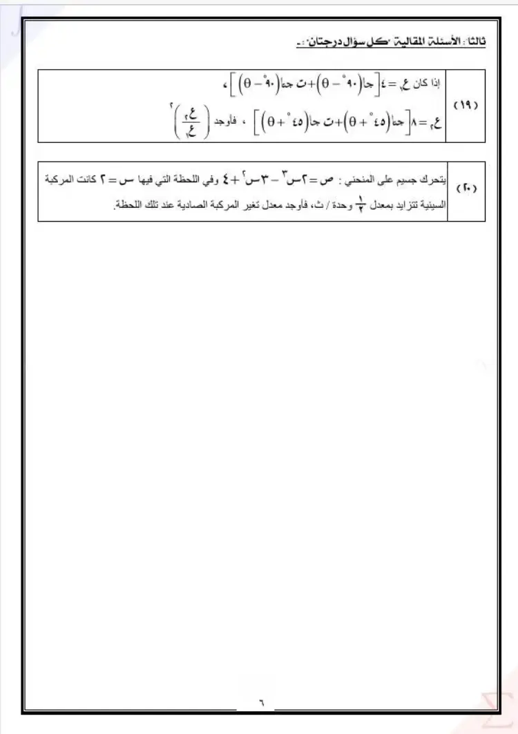 - السؤال: إذا كان معدل تغير ميل المماس لمنحنى دالة عند أي نقطة عليه يساوي (6x − 3)، وكان المنحنى يمر بالنقطة (2 ، 2)، وكان المماس عند x = 1 أفقيًا، فإن معادلة المنحنى هي:
