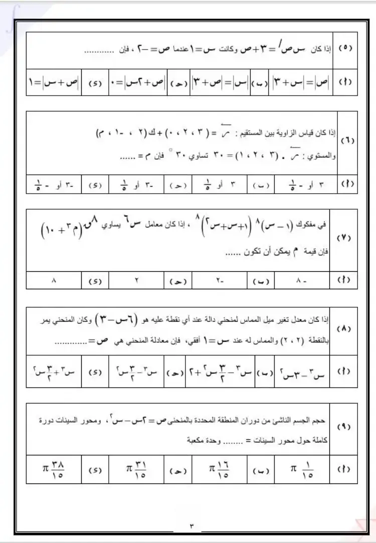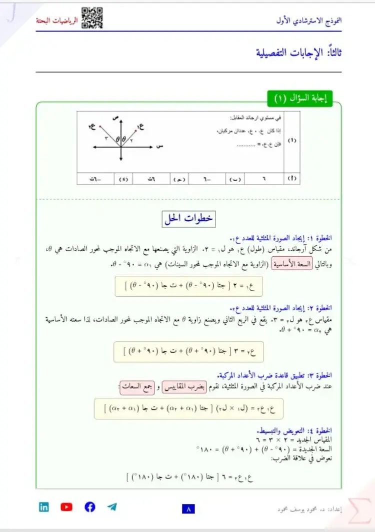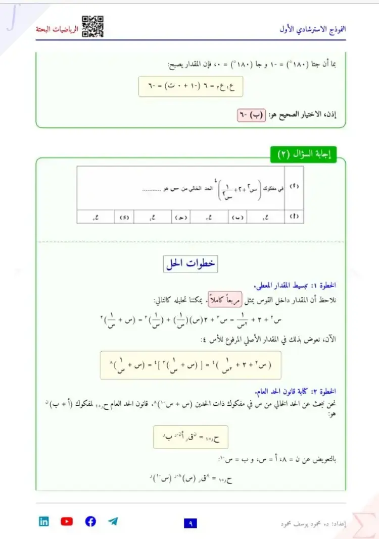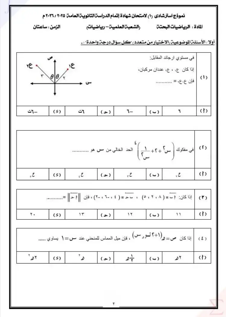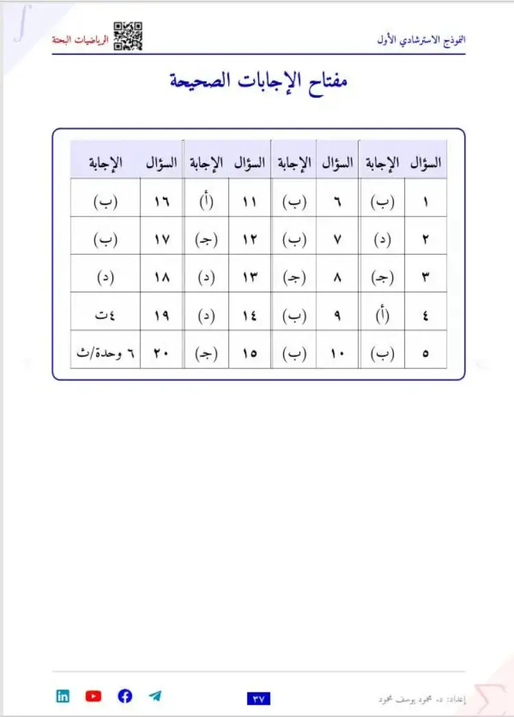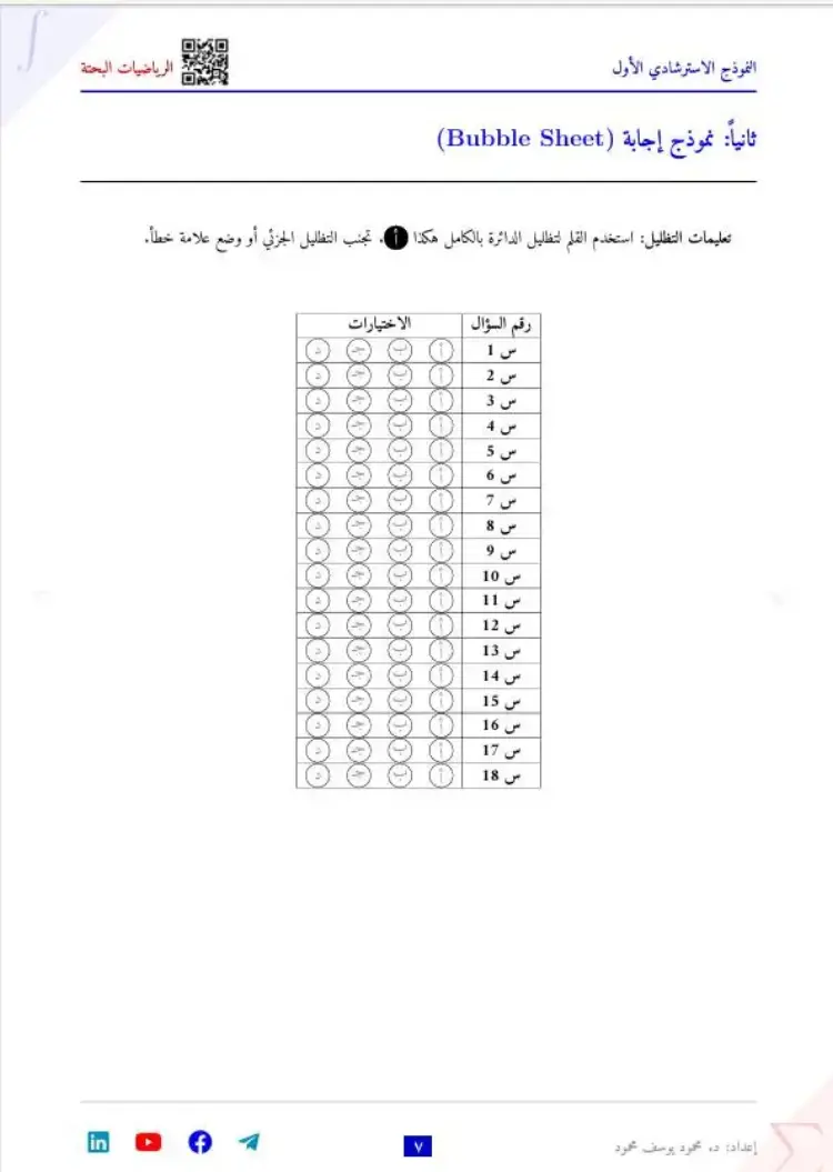 يمكن الاطلاع على بقية حل النموذج الاسترشادي الأول رياضيات بحتة ثالثة ثانوي 2026 من خلال الصور التالية، للتأكد من دقة الحلول وصحة الإجابات.