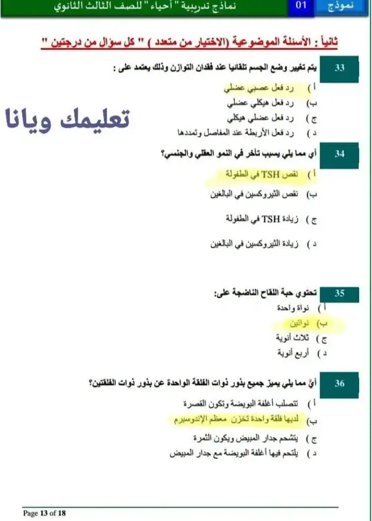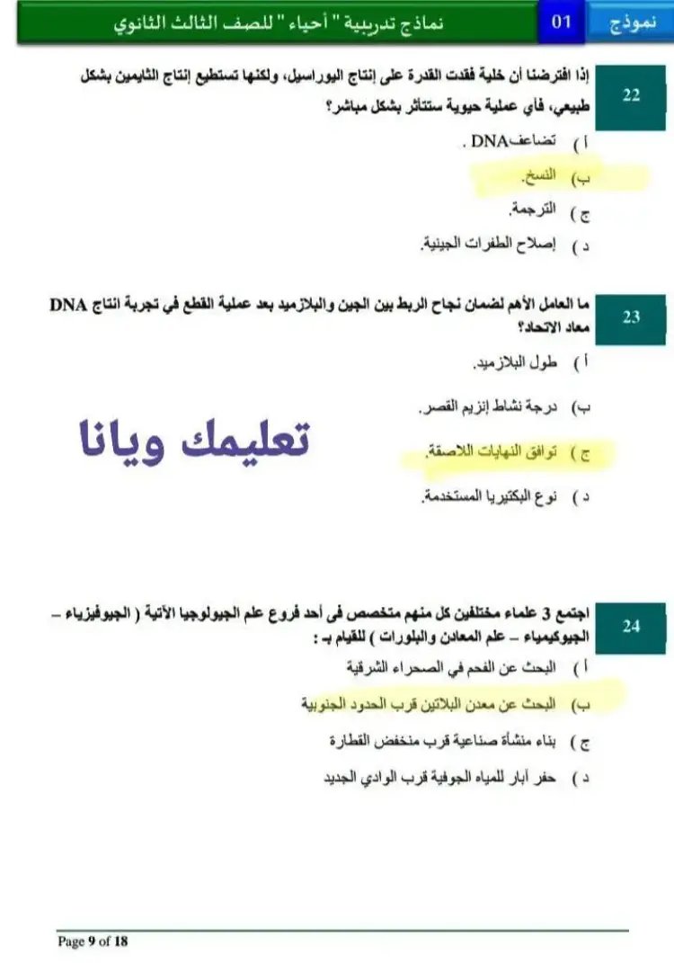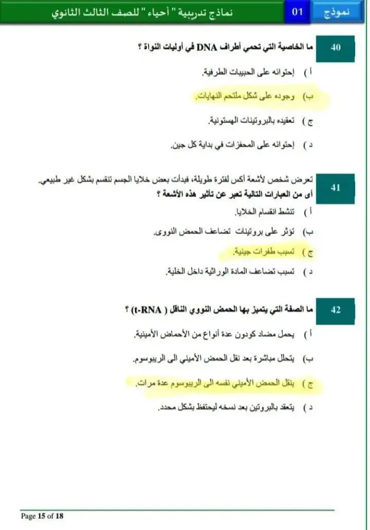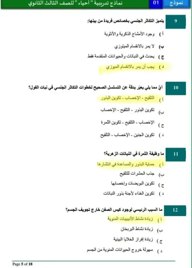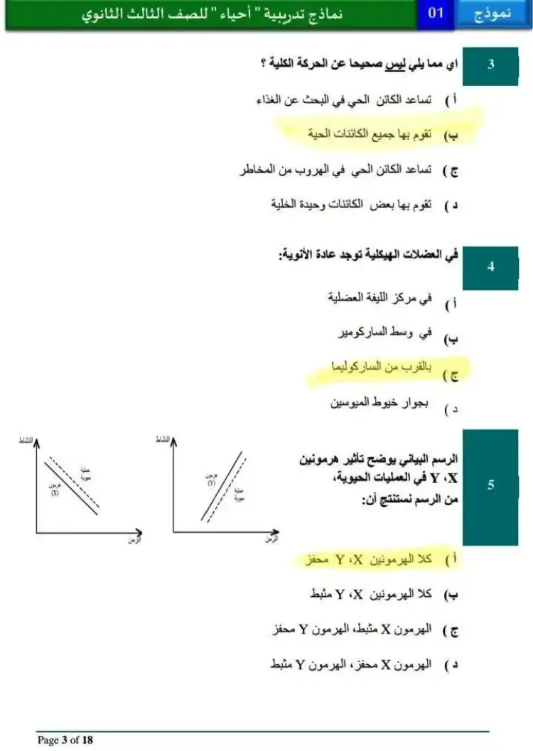 يمكن للطلاب استكمال الاطلاع على حل النموذج الاسترشادي الأول أحياء ثالثة ثانوي 2026 من خلال الصور التالية، للتأكد من صحة الإجابات ومراجعة الحلول بشكل تفصيلي.
