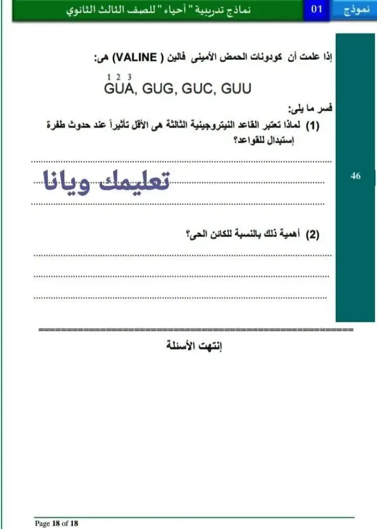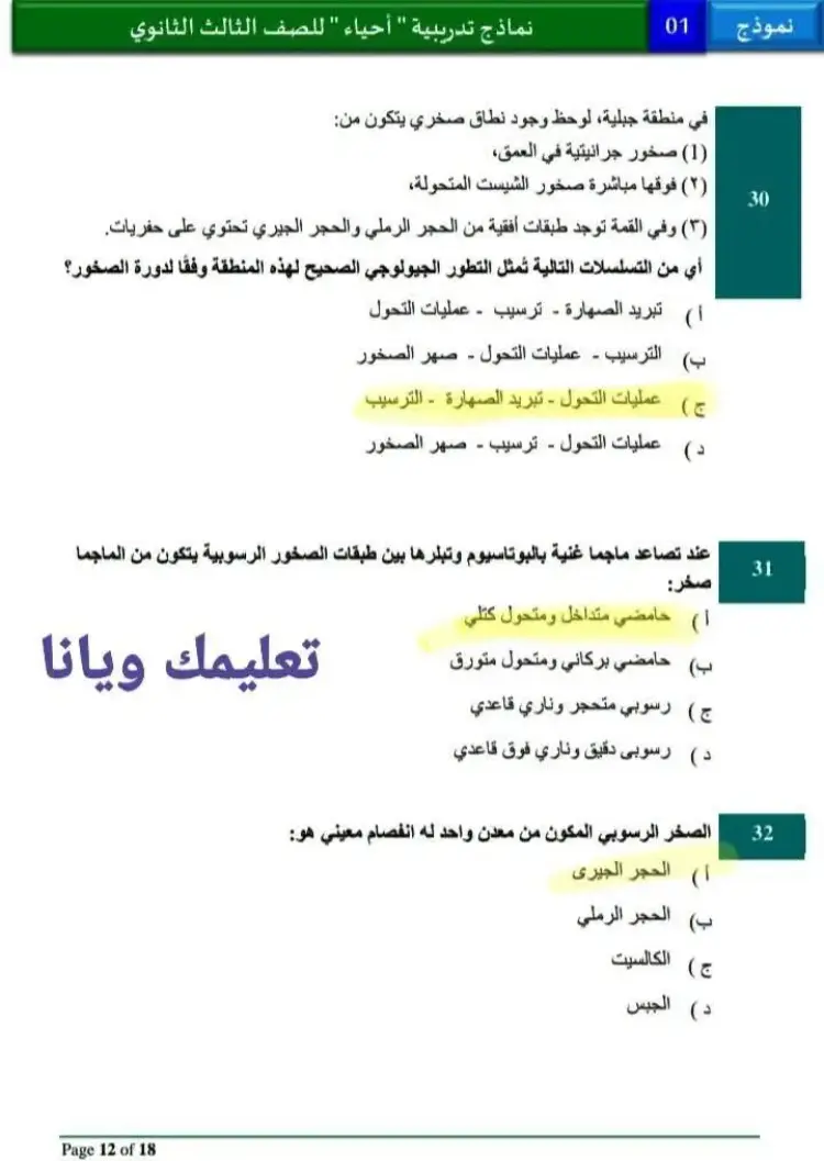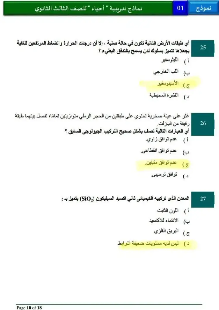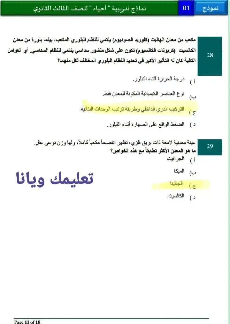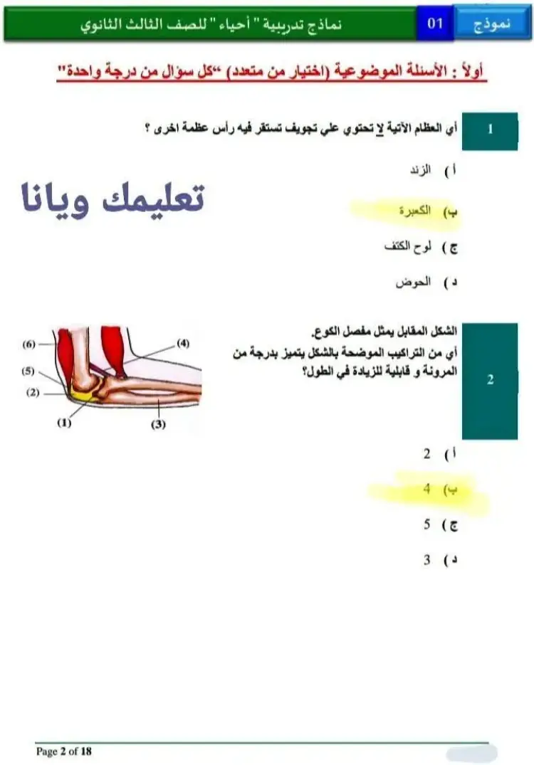 يمكن للطلاب استكمال الاطلاع على حل النموذج الاسترشادي الأول أحياء ثالثة ثانوي 2026 من خلال الصور التالية، للتأكد من صحة الإجابات ومراجعة الحلول بشكل تفصيلي.