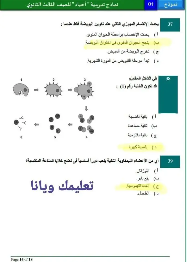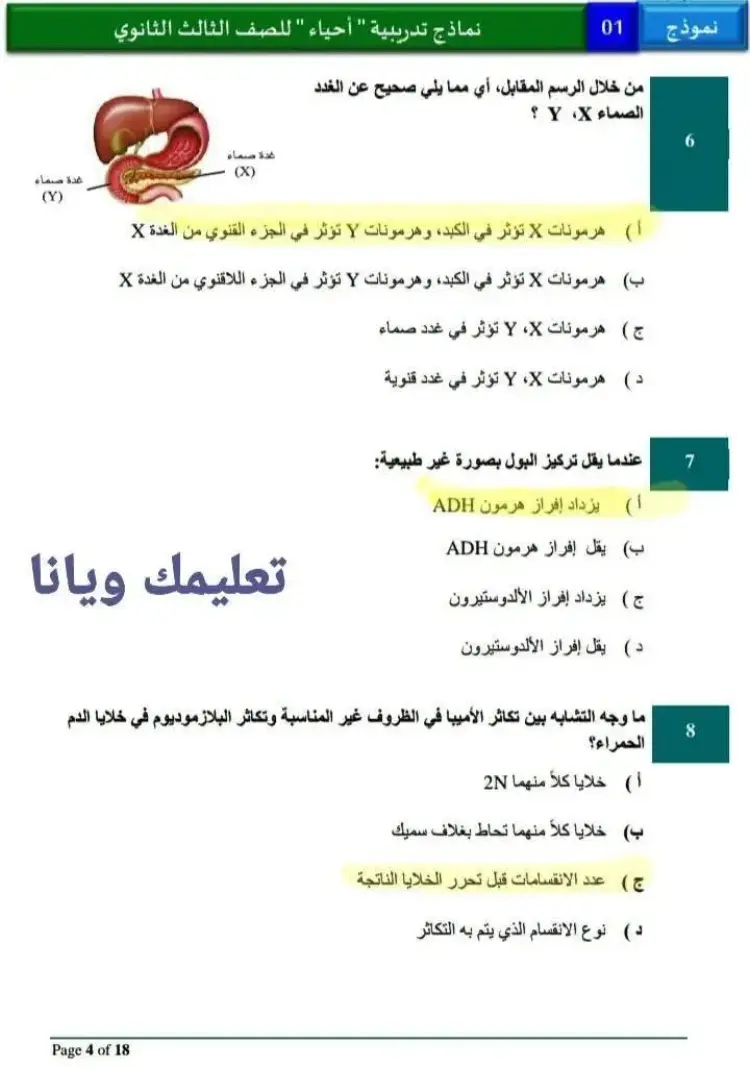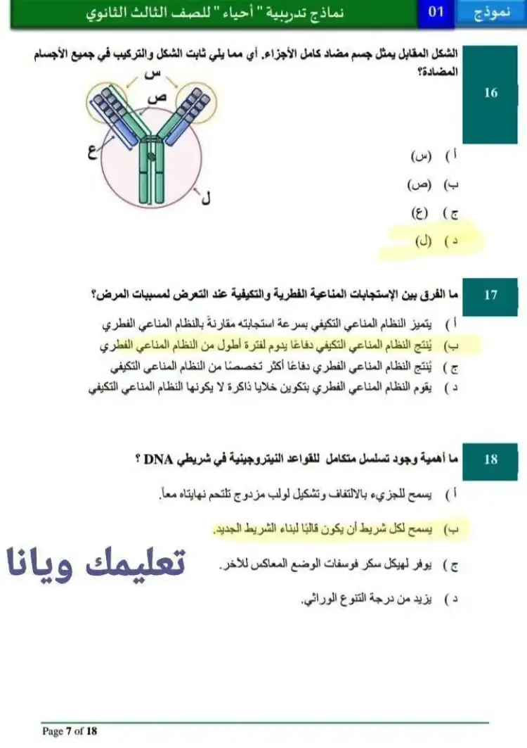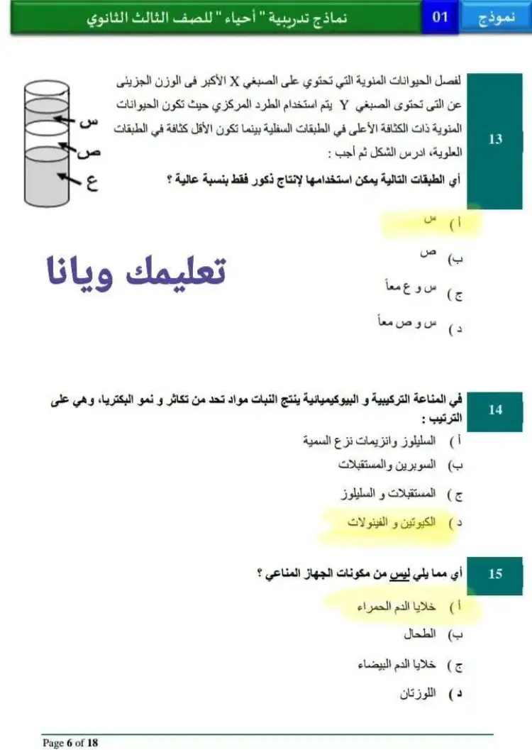 أتاحت وزارة التربية والتعليم والتعليم الفني هذه النماذج الاسترشادية لطلاب الثانوية العامة، وقام معلمون متخصصون بحلها وشرحها، وكان من بينها حل نموذج الاسترشادي أحياء للصف الثالث الثانوي 2026 النموذج الأول، لمساعدة الطلاب في مراجعة إجاباتهم والتأكد من مدى صحتها بعد الانتهاء من حل النموذج بالكامل.