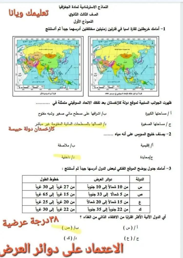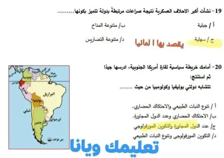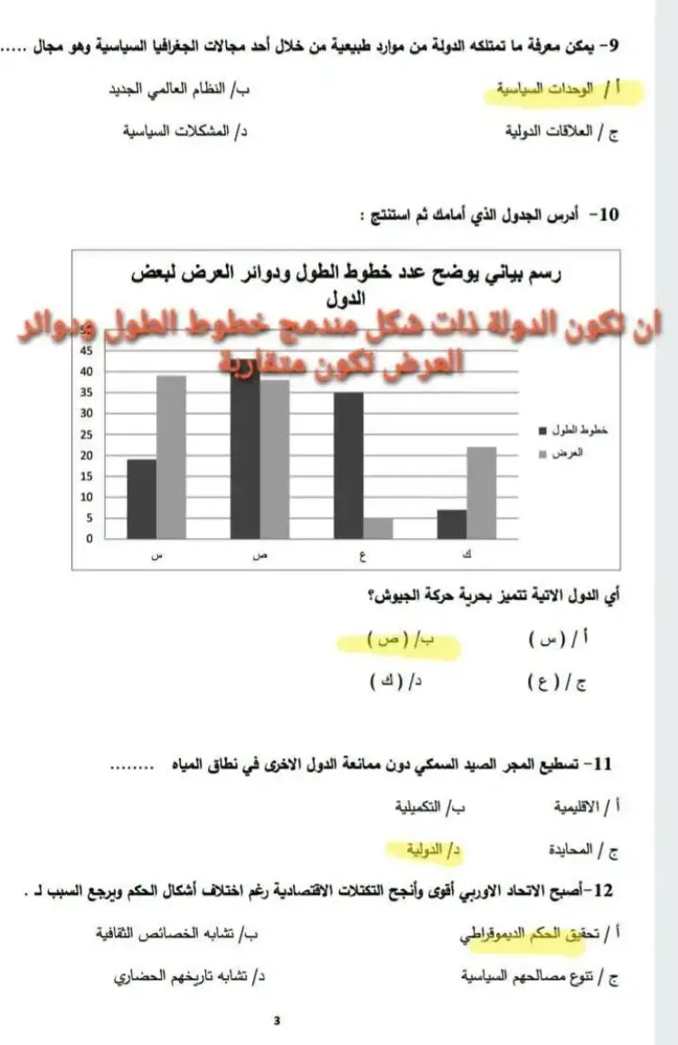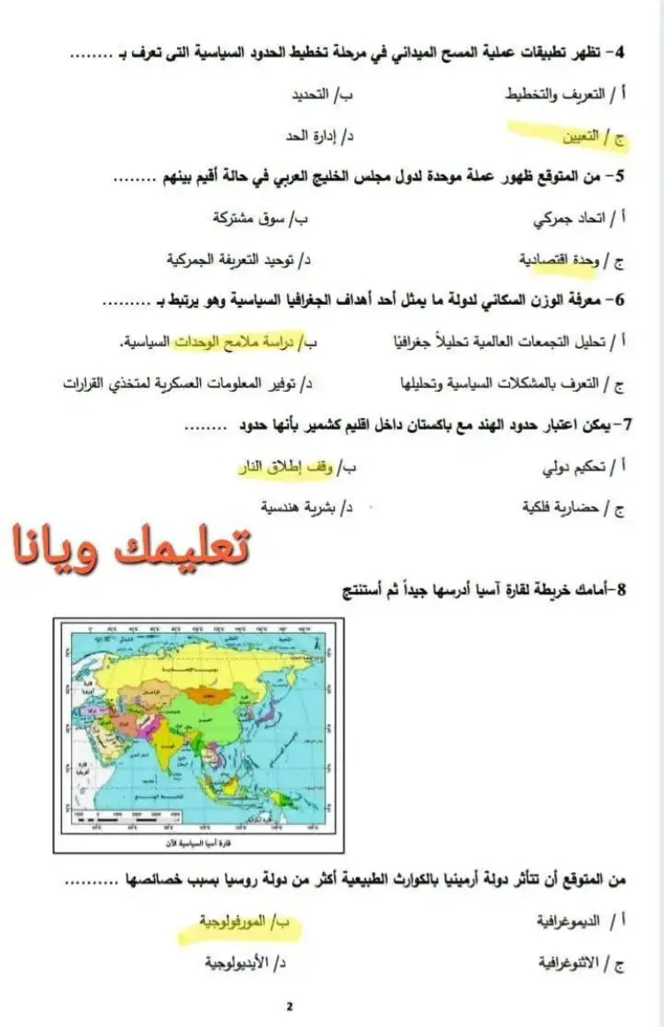 ب/ دراسة ملامح الوحدات السياسية (الإجابة الصحيحة)