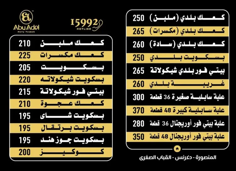 نتطرق في السطور التالية إلى أسعار كحك العيد من أبو عادل 2026، لتتعرف على منيو العيد كامل، وذلك دون الحاجة إلى التوجه للمحل.