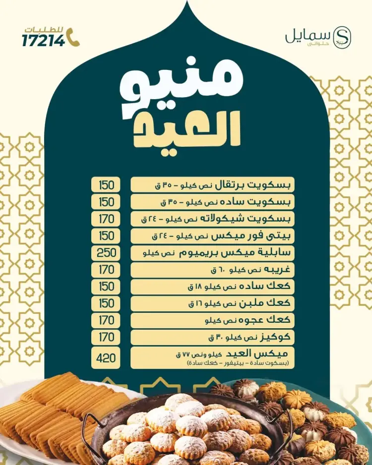 تقدم حلواني سمايل (Smile) قائمة أسعار مخبوزات عيد الفطر المبارك لعام 2026، مستهدفا تلبية احتياجات الأسر المصرية بمجموعة متنوعة من الكعك والبسكويت والحلويات الشرقية، مع الحفاظ على التوازن بين الجودة والسعر في ظل المتغيرات الاقتصادية الحالية.