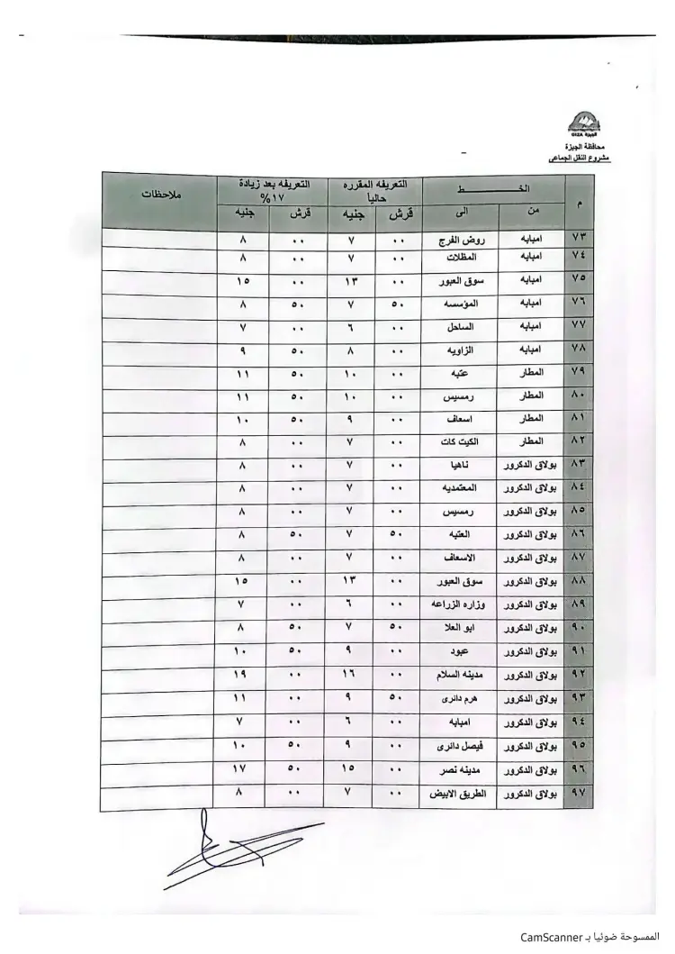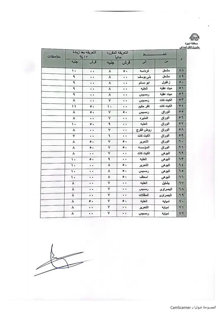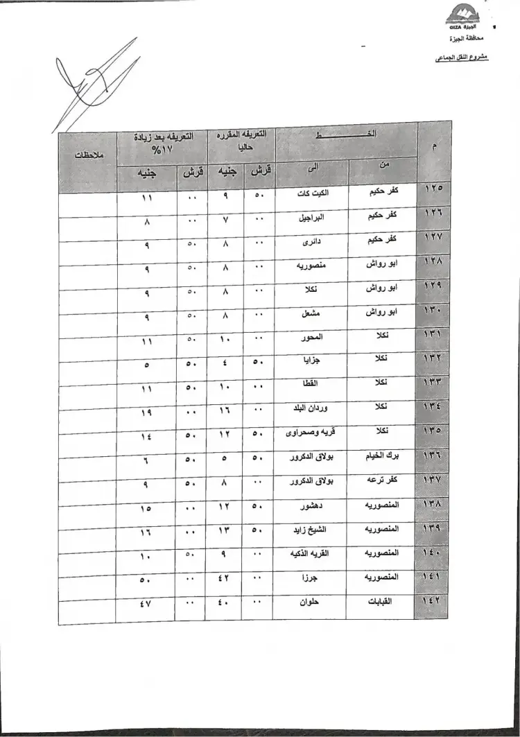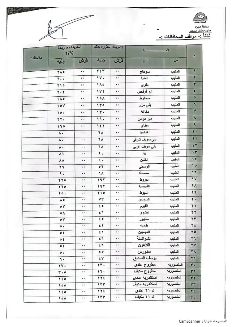 ينشر شبابيك التعريفة الجديدة للمواصلات بالجيزة بعد الزيادة الأخيرة في مارس 2026، ليتعرف جميع الركاب على الأجرة تزامنا مع تطبيق الأسعار الجديدة.