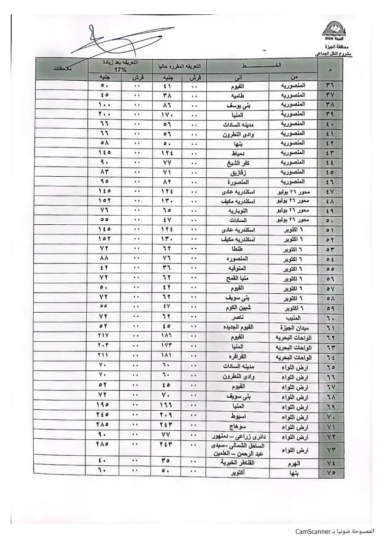 التعريفة الجديدة للمواصلات بالجيزة بعد الزيادة الأخيرة في مارس 2026