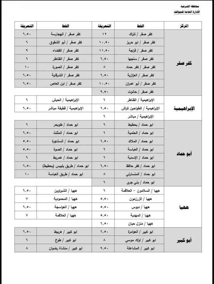 جاءت تعريفة الركوب الجديدة في الشرقية على النحو التالي: