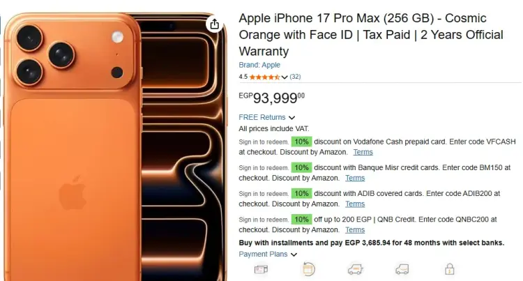 - آيفون 17 برو ماكس: يبدأ من89,999 - 130,000 جنيه.