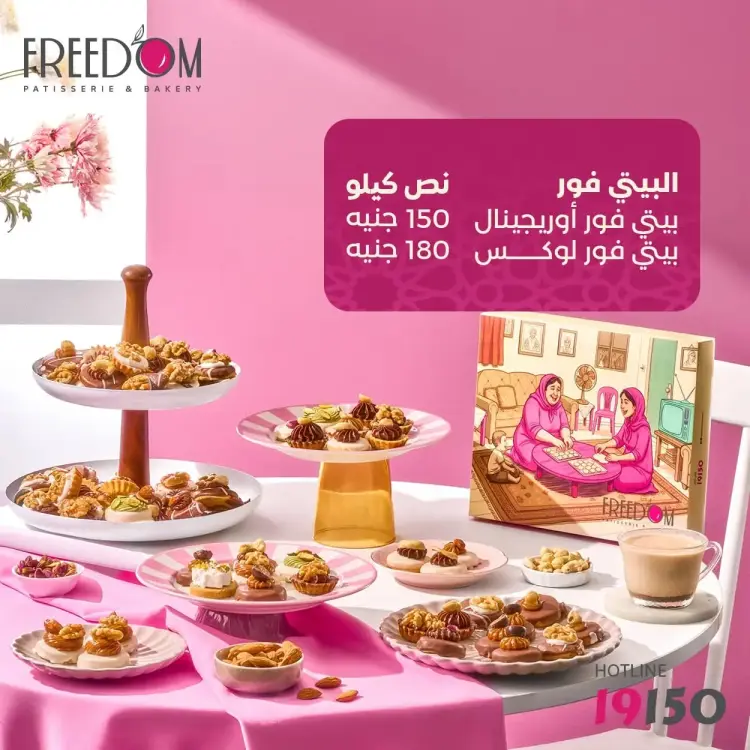 يستعد حلواني فريدم لاستقبال عيد الفطر المبارك لعام 2026 بطرح تشكيلة متنوعة من المخبوزات والحلويات التي تميزت بطعمها التقليدي الأصيل. حيث أعلن المتجر عن توفير كافة أصناف نواعم العيد في جميع فروعه المنتشرة بمناطق فيصل، والسيدة زينب، وشبرا الخيمة، ومدينة نصر، والشروق، تلبيةً لاحتياجات العملاء.