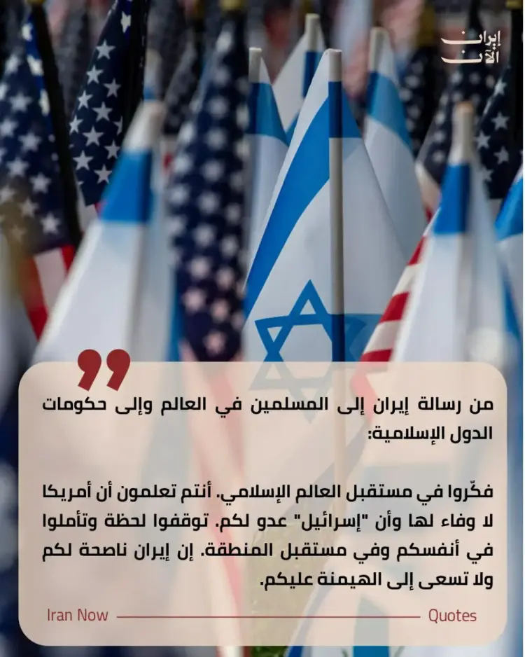 وشدد الخطاب الإيراني على أن المواجهة الحالية تضع العالم الإسلامي أمام خيارين، إما الوقوف مع قوى المقاومة أو الانحياز للطرف الآخر، محذرا من أن واشنطن تفتقر للوفاء بعهودها وأن تل أبيب تظل عدوا تاريخيا للمنطقة.