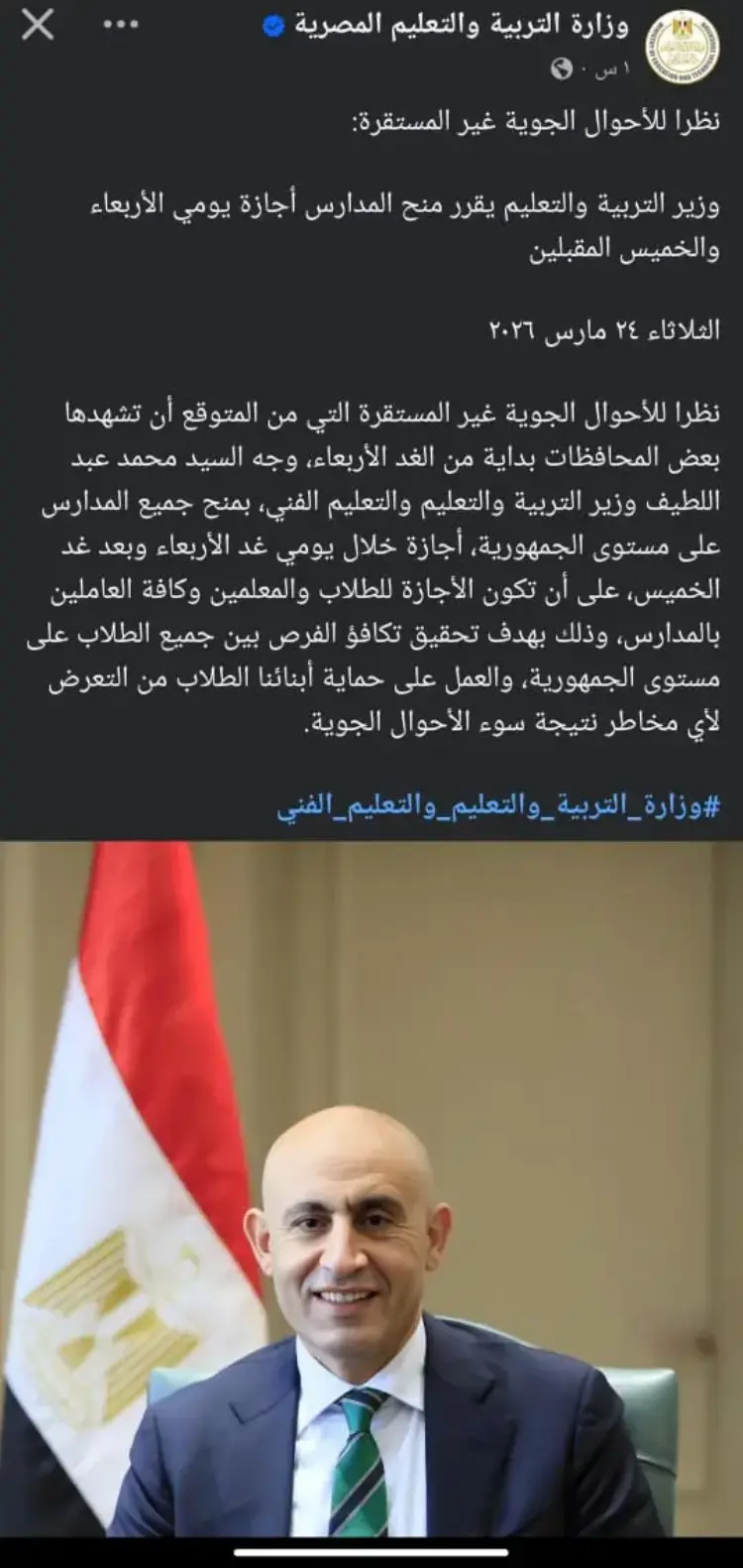 تفاصيل قرار إجازة وزارة التربية والتعليم مارس 2026