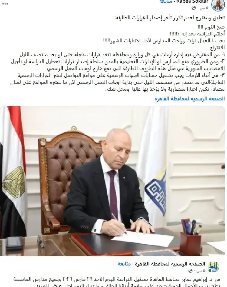 هل تم تعليق الدراسة في مصر اليوم الأحد 29 مارس 2026؟