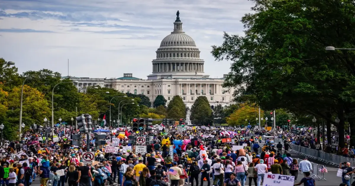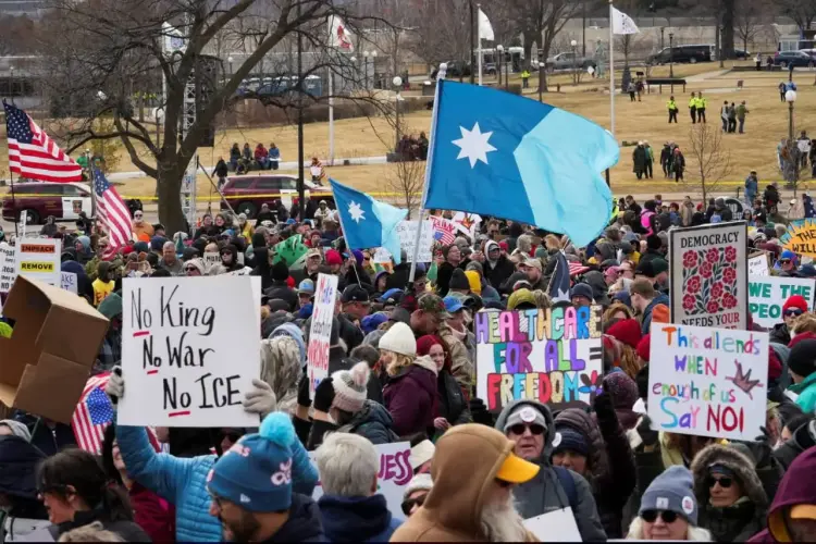 انطلقت مظاهرات لا للملوك في أمريكا أمس السبت في حراك احتجاجي واسع شمل أكثر من 3000 موقع بجميع أنحاء الولايات المتحدة، للتنديد بسياسات إدارة الرئيس دونالد ترامب والاعتراض على احتمالات الحرب مع إيران وقوانين الهجرة وارتفاع تكاليف المعيشة.