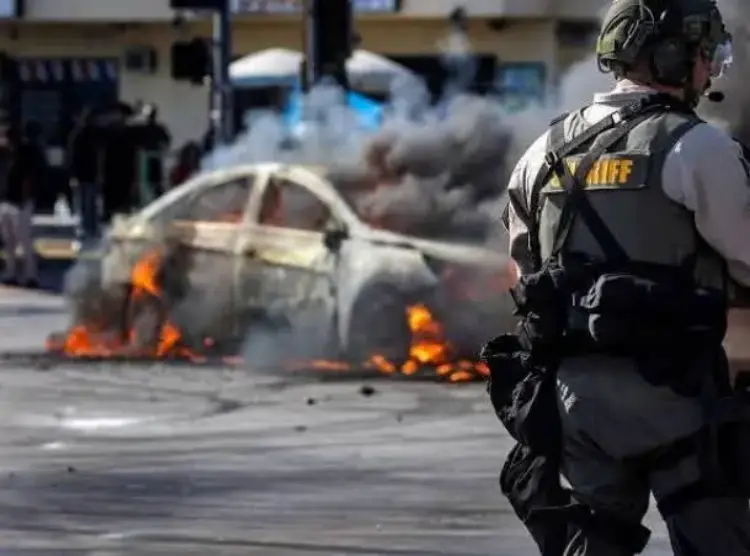 وأفادت وزارة الأمن الداخلي الأمريكية بأن مئات المتظاهرين حاصروا مجمعا فيدرالي وسط مدينة لوس أنجلوس، مشيرة إلى قيام بعض المحتجين بإلقاء الحجارة والزجاجات وقطع خرسانية باتجاه عناصر الشرطة، مما أدى إلى إصابة ضابطين بجروح نقلا على إثرها لتلقي العلاج، وهو ما دفع القوات الأمنية للتدخل المباشر واستخدام أدوات مكافحة الشغب بعد تجاهل المتظاهرين للتحذيرات الرسمية بضرورة إخلاء الموقع.