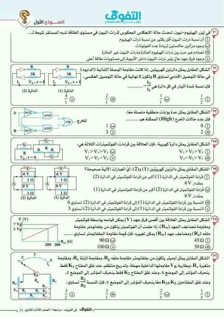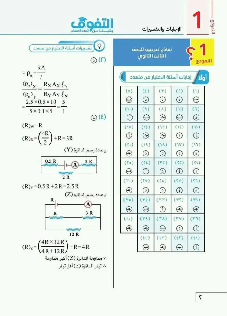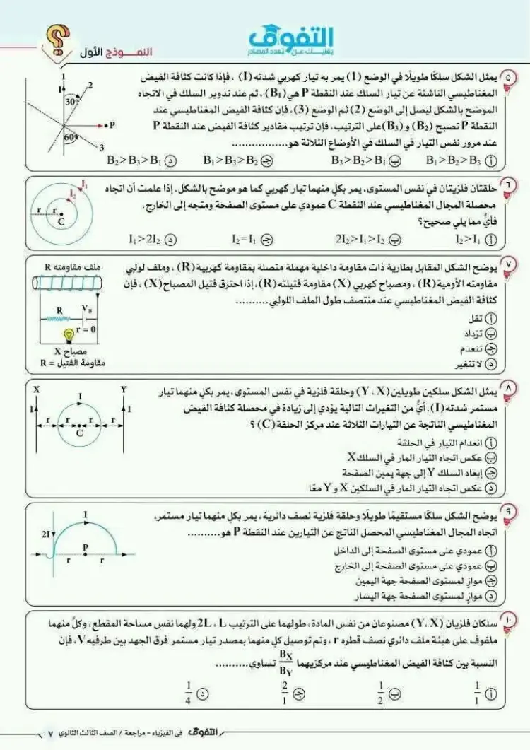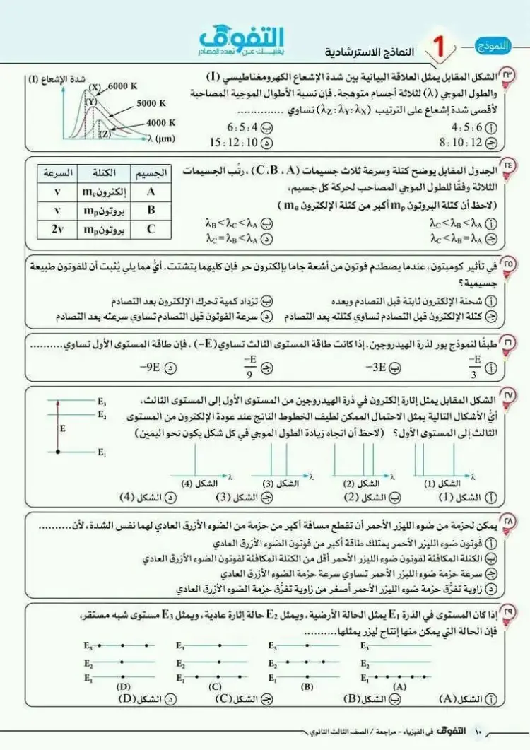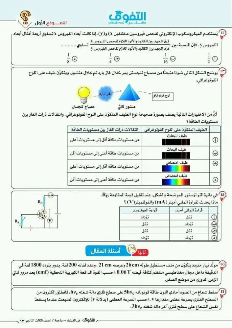 يمكن متابعة باقي حل نموذج الامتحان الاسترشادي فيزياء ثالثة ثانوي 2026 النموذج الأول من خلال الصور التالية، وذلك للاطلاع على بقية الإجابات والتأكد من دقة الحلول: