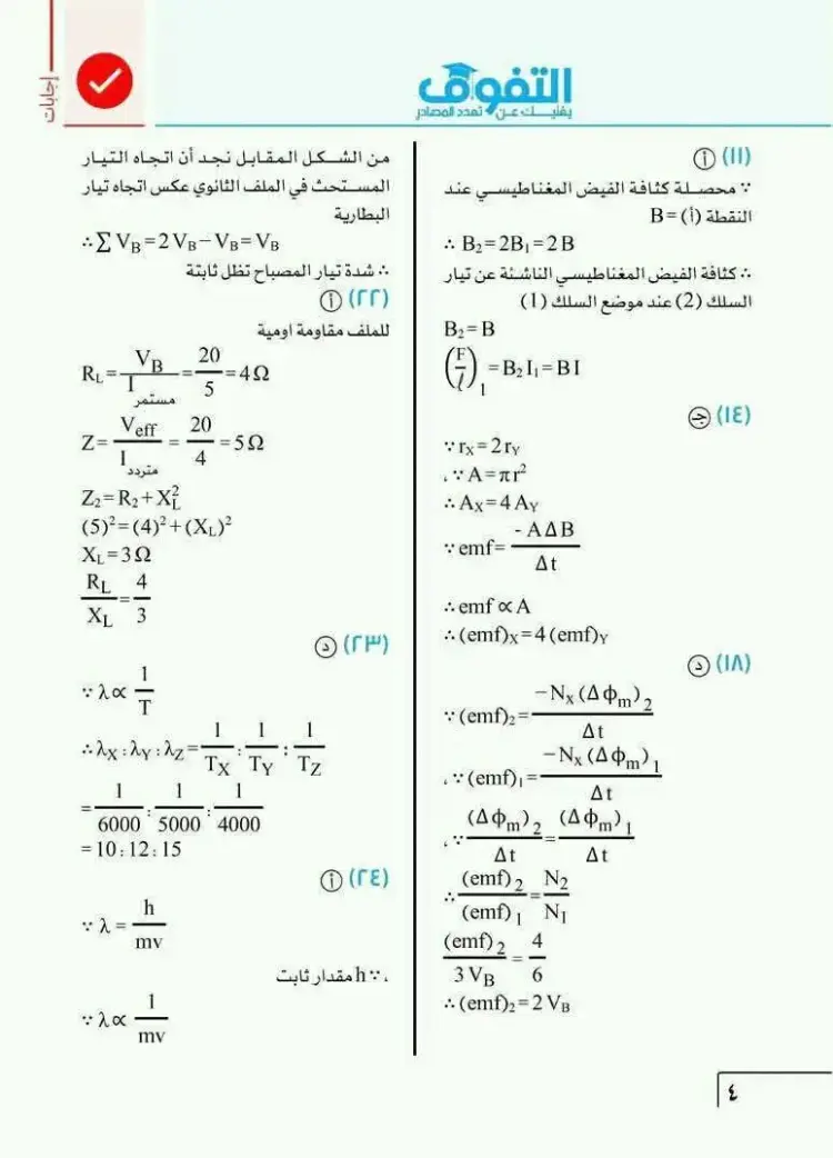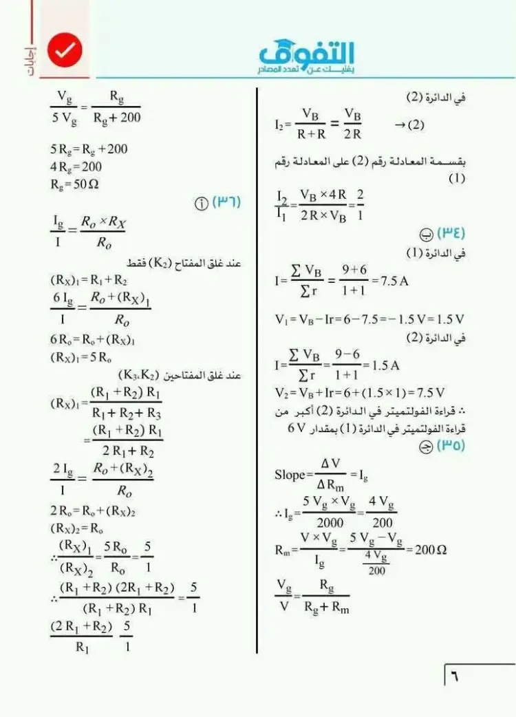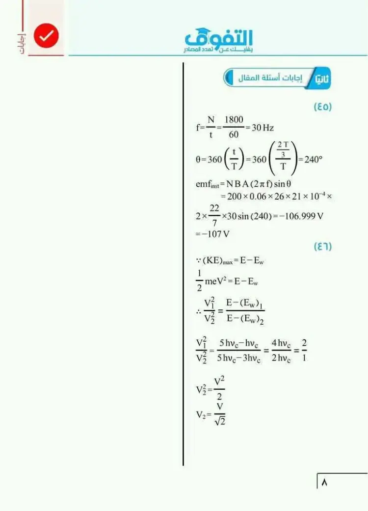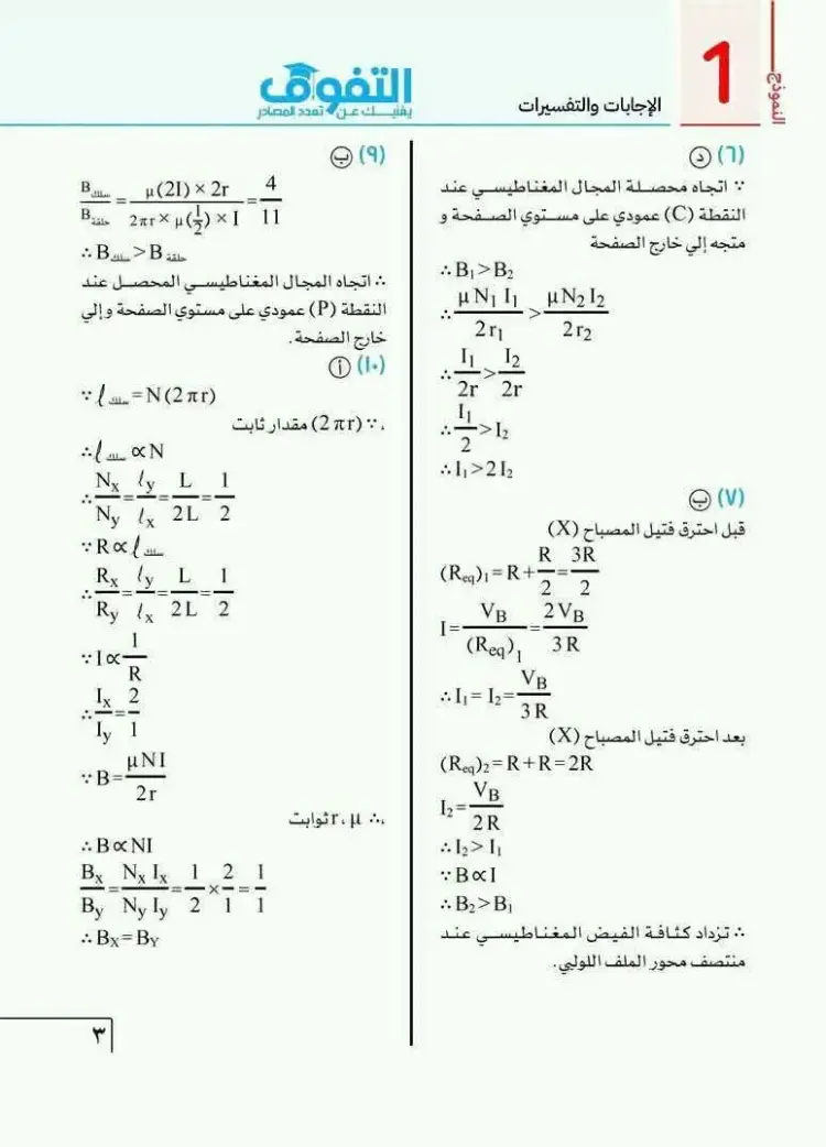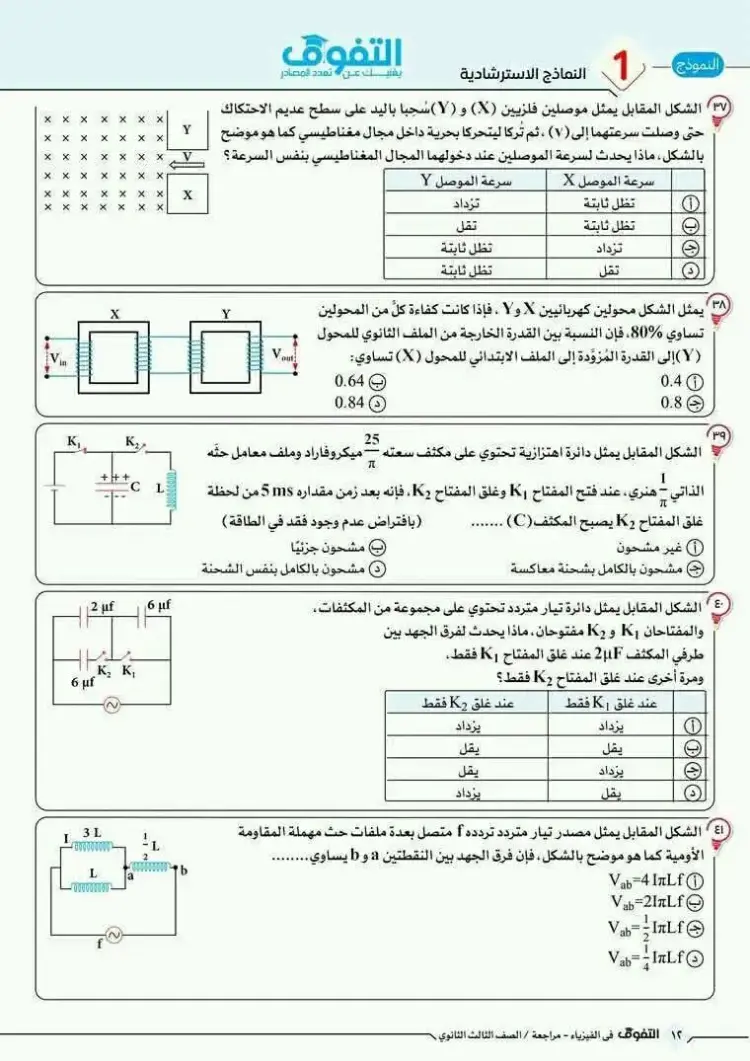 يمكن متابعة باقي حل نموذج الامتحان الاسترشادي فيزياء ثالثة ثانوي 2026 النموذج الأول من خلال الصور التالية، وذلك للاطلاع على بقية الإجابات والتأكد من دقة الحلول: