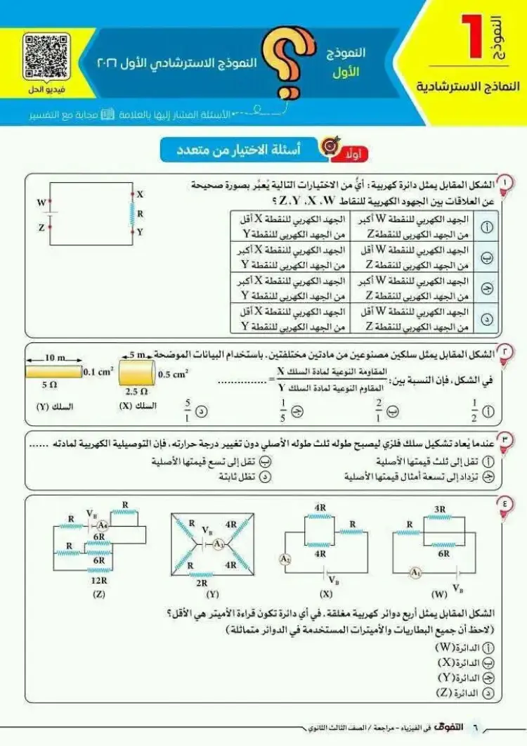 حل النموذج الاسترشادي الأول فيزياء للصف الثالث الثانوي 2026