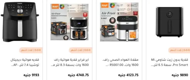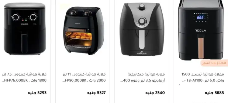 ديلونجي (Ideal Fry 1.25 كجم): حوالي 5,999 جنيه، وموديلات مالتي فراير 1.7 لتر تصل إلى 22,190 جنيه