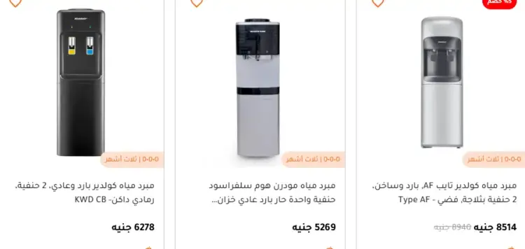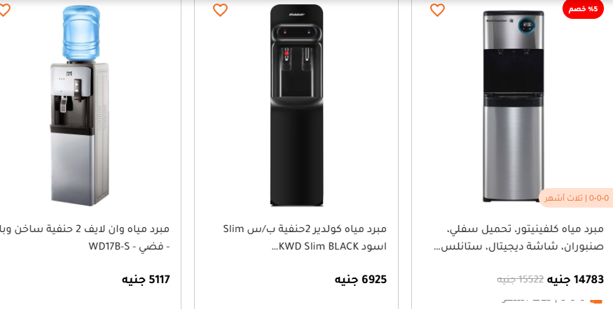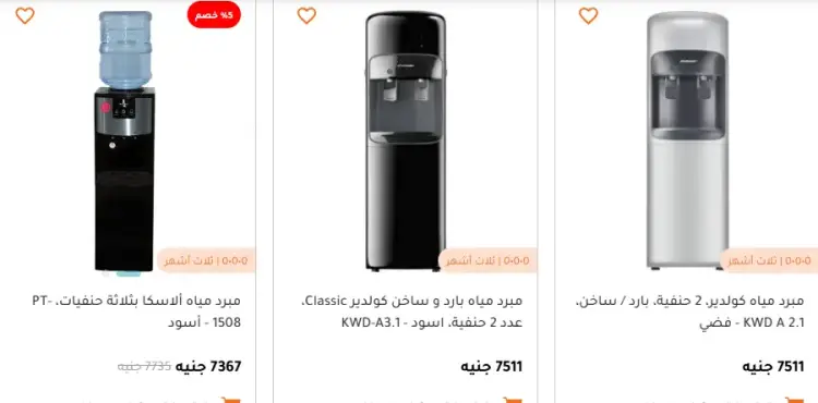 تتراوح أسعار مبردات المياه بشكل عام بين 3,000 و15,000 جنيه، وفقا للماركة والإمكانيات، مع توفر أنظمة تقسيط تبدأ من حوالي 271 جنيه شهريا.