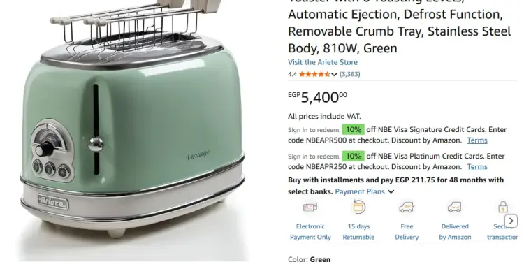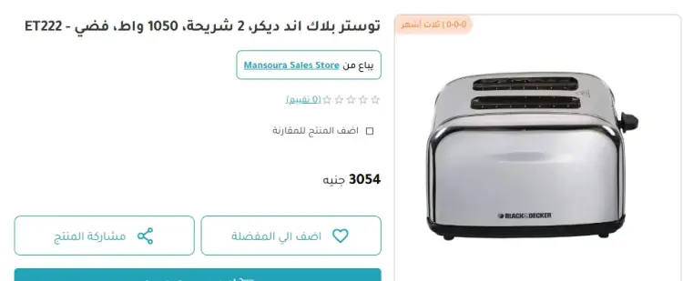 تتراوح أسعار محمصات الخبز بين 700 و3,500 جنيه للفئات الاقتصادية والمتوسطة، بينما تتجاوز بعض الموديلات الفاخرة 18,000 جنيه، حسب الماركة والتكنولوجيا المستخدمة.