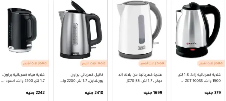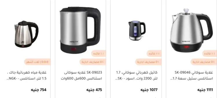 وتتراوح الأسعار المعتادة لهذه الفئة بين 500 و1000 جنيه حسب الماركة والموديل، مع اختلاف بسيط في التصميم وسرعة الغليان.