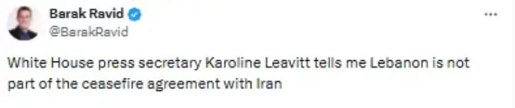 فقد صرّحت المتحدثة بإسم البيت الأبيض أن الهدنة لا تشمل لبنان ومن المتوقع أن تستمر العمليات هناك في الوقت الراهن، بينما نفت مصادر تقول إن بنود الاتفاق قد تشمل وقف جميع الأعمال العدائية على جميع الجبهات، بما في ذلك لبنان، لكن حتى الآن لا يوجد تأكيد نهائي بعيدًا عن التصريحات المتضاربة.