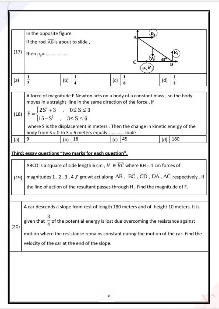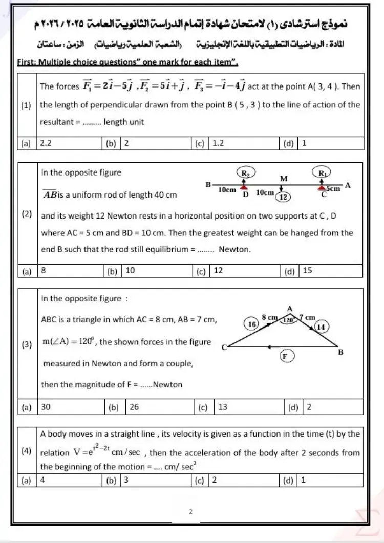 يتضمن حل نموذج الامتحان الاسترشادي الرياضيات التطبيقية الصف الثالث الثانوي لغات 2026 النموذج الأول مجموعة من الأسئلة التي عرض المدرسون إجاباتها بشكل تفصيلي، وجاء من بين أبرز الأسئلة والحلول الواردة في النموذج ما يلي:
