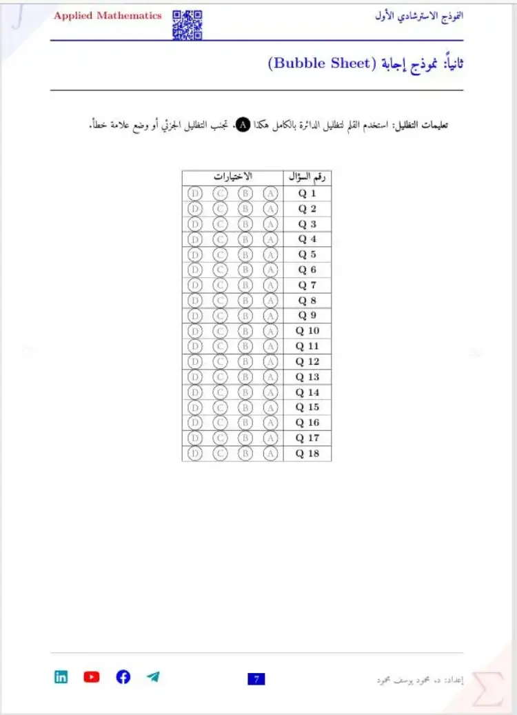 يمكن متابعة باقي حل نموذج الامتحان الاسترشادي الرياضيات التطبيقية الصف الثالث الثانوي لغات 2026 النموذج الأول من خلال الصور التالية، للاطلاع على بقية الإجابات والتأكد من صحة الحلول.