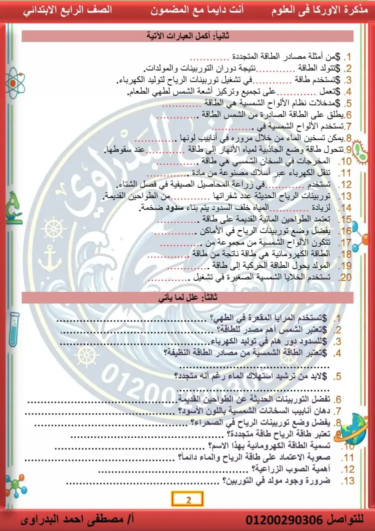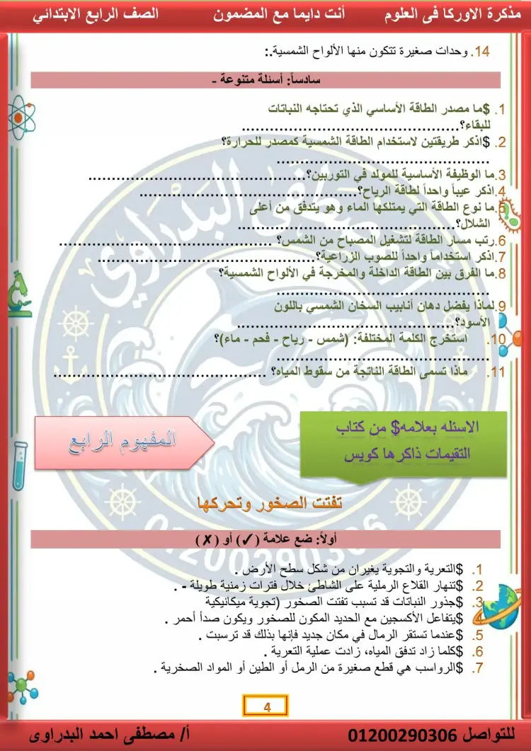 مراجعة شهر إبريل علوم رابعة ابتدائي أزهر 2026