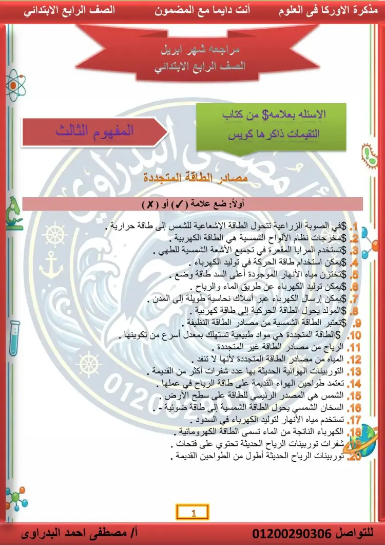 يستطيع الطلاب تحميل مراجعة شهر إبريل علوم الصف الرابع الابتدائي أزهر 2026 من خلال الصور التالية: