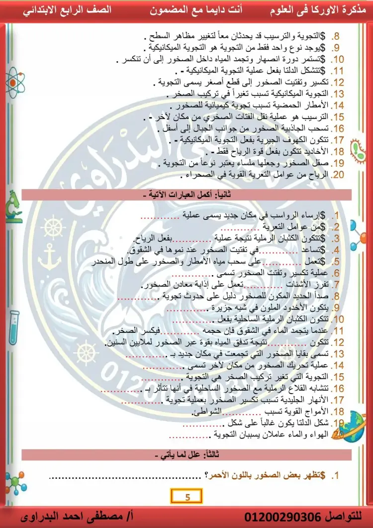 مراجعة شهر إبريل علوم الصف الرابع الابتدائي أزهر 2026