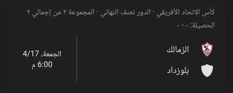 ويستعد الفريق الأول لكرة القدم بنادي الزمالك حاليا لمواجهة نظيره شباب بلوزداد الجزائري في ذهاب دور نصف نهائي كأس الكونفدرالية، الجمعة المقبلة 17 أبريل الجاري في تمام الساعة 6:00 مساء باستاد القاهرة الدولي.