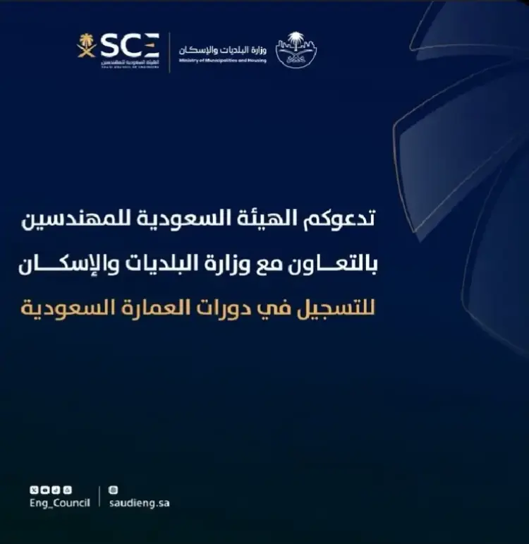 أعلنت الهيئة السعودية للمهندسين اليوم الثلاثاء 14 أبريل 2026 عبر صفحتها الرسمية على إكس عن بدء استقبال طلبات التسجيل في دورات العمارة السعودية 2026 بالتعاون مع وزارة البلديات والإسكان، حيث تهدف هذه المبادرة التدريبية إلى تعزيز المهارات المهنية للمهندسين والمهتمين من خلال برامج نوعية تركز على الهوية المعمارية المحلية وتدمج بين الموروث العمراني والتقنيات الحديثة في التصميم والبناء.