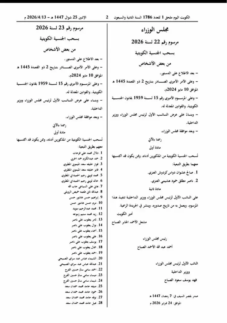 وتأتي هذه التطورات في ظل إعلان السلطات الكويتية خلال الفترة الأخيرة عن قرارات موسعة شملت سحب الجنسية من أكثر من ألفي حالة، ضمن عملية مراجعة شاملة لملفات التجنيس والتأكد من سلامة الإجراءات القانونية التي تمت خلال سنوات سابقة.