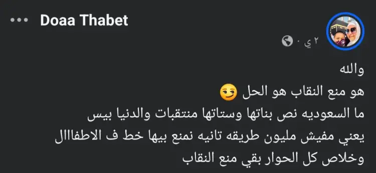 وأظهرت النقاشات المتداولة عبر منصات التواصل الاجتماعي انقساما بين المتابعين؛ فبينما رأت بعض الأصوات أن النقاب يمثل «ثغرة أمنية» تفتح بابا للتخفي والتستر على المجرمين، دافعت أصوات أخرى عنه باعتباره حرية شخصية وعبادة لا تسبب ضررا بذاتها.