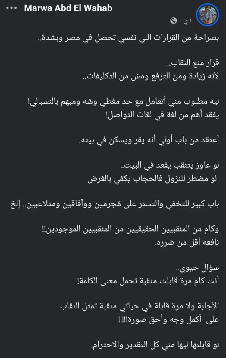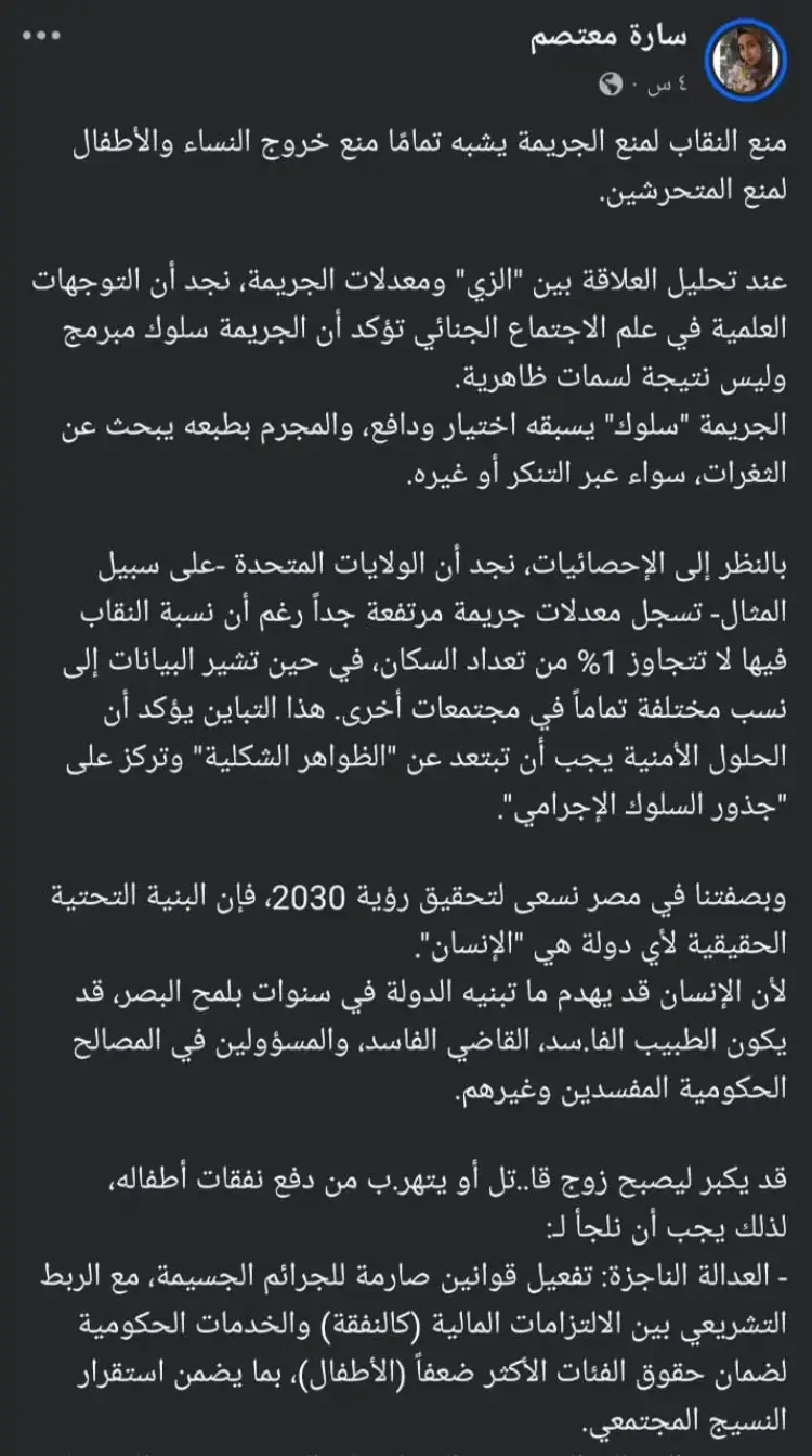 وأثارت الواقعة مناقشة حادة بين تيار يطالب بفرض قيود أمنية مشددة على تغطية الوجه في المنشآت العامة، وتيار آخر يتمسك بالحقوق الدستورية والشرعية للمنتقبات، وسط تباين في الآراء حول مدى فعالية الإجراءات المقترحة لحماية أمن المجتمع دون المساس بالحريات الشخصية.