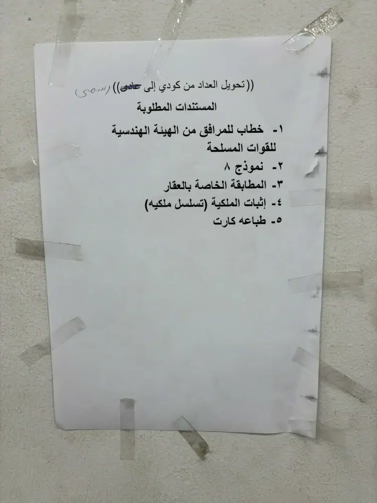 المستندات المطلوبة لتحويل العداد الكودي إلى قانوني