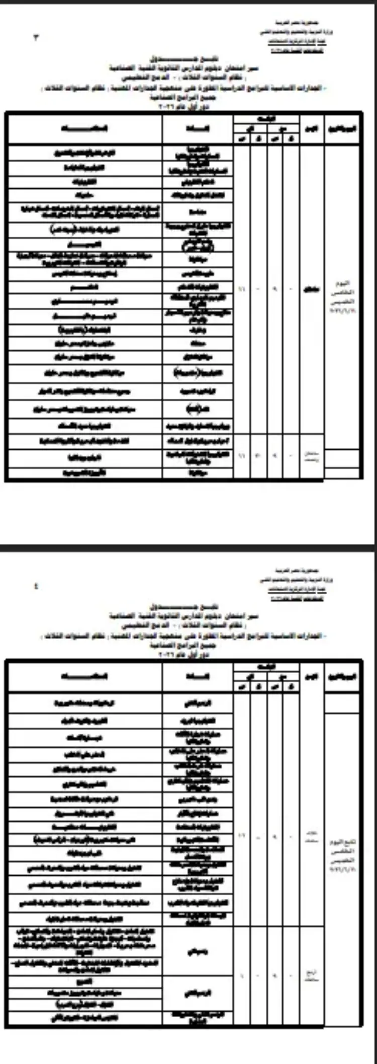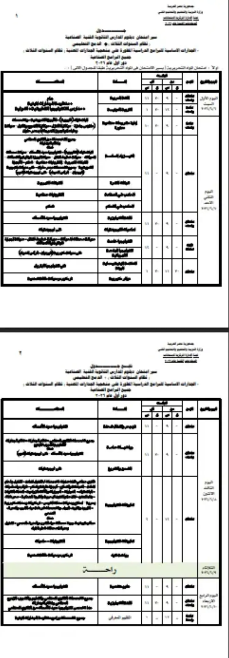 جدول امتحانات دبلوم المدارس الثانوية الفنية الصناعية والدمج والجدارات ونظام 3 سنوات 2026